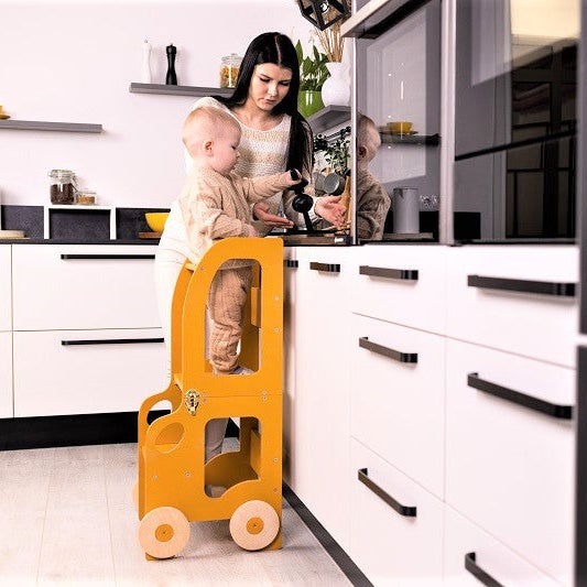 Denne montessori-inspirerede køkkentrapper, der nemt kan omdannes til bord og stol, er designet og skabt til læring, madlavning, klatring, siddeplads ved det store familiarbord samt spisning eller bare leg. Og det mest spændende er, at den ligner et legetøj og kan blive en god ven for dit barn.