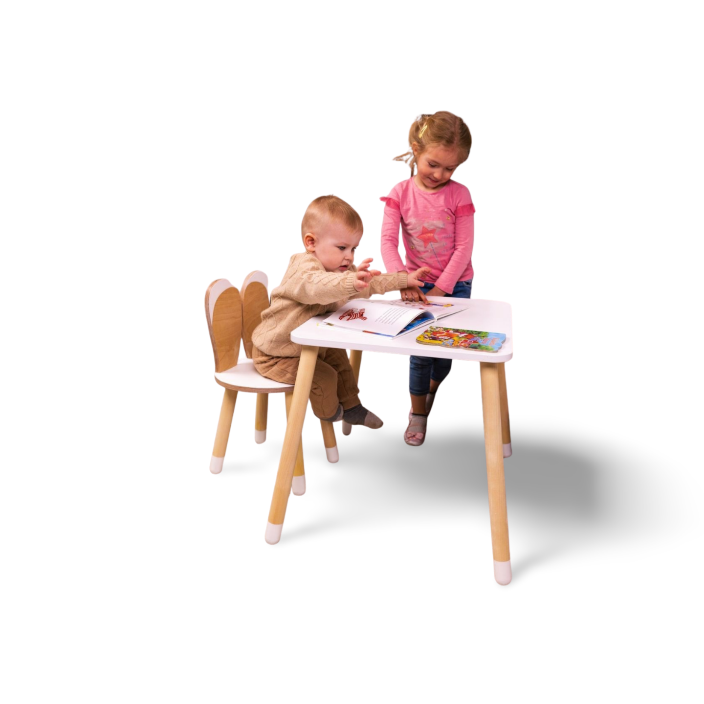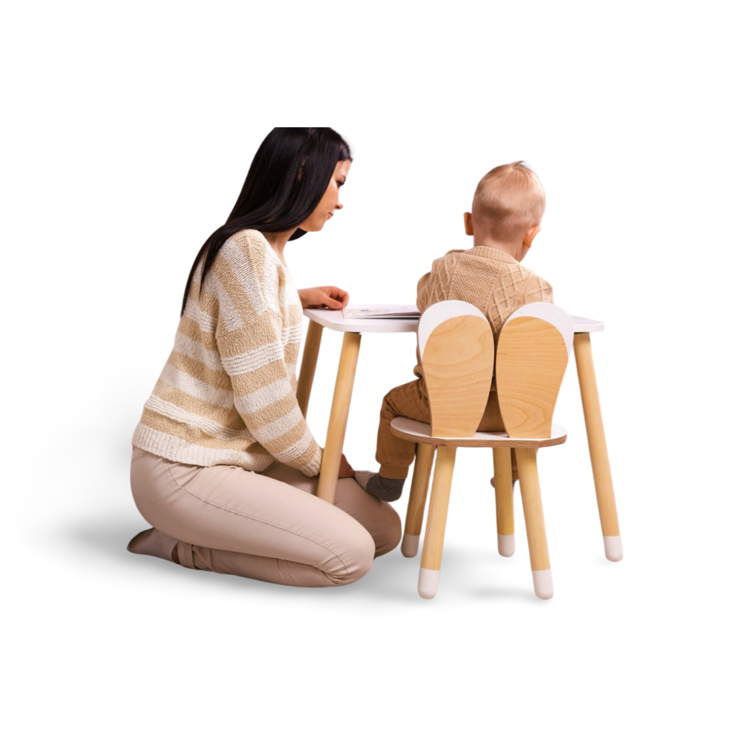 Dette charmerende træ kanin-bord og -stol sæt skaber den perfekte plads til dit barns kreative aktiviteter: farvelægning, kunsthåndværk, læsning og leg.