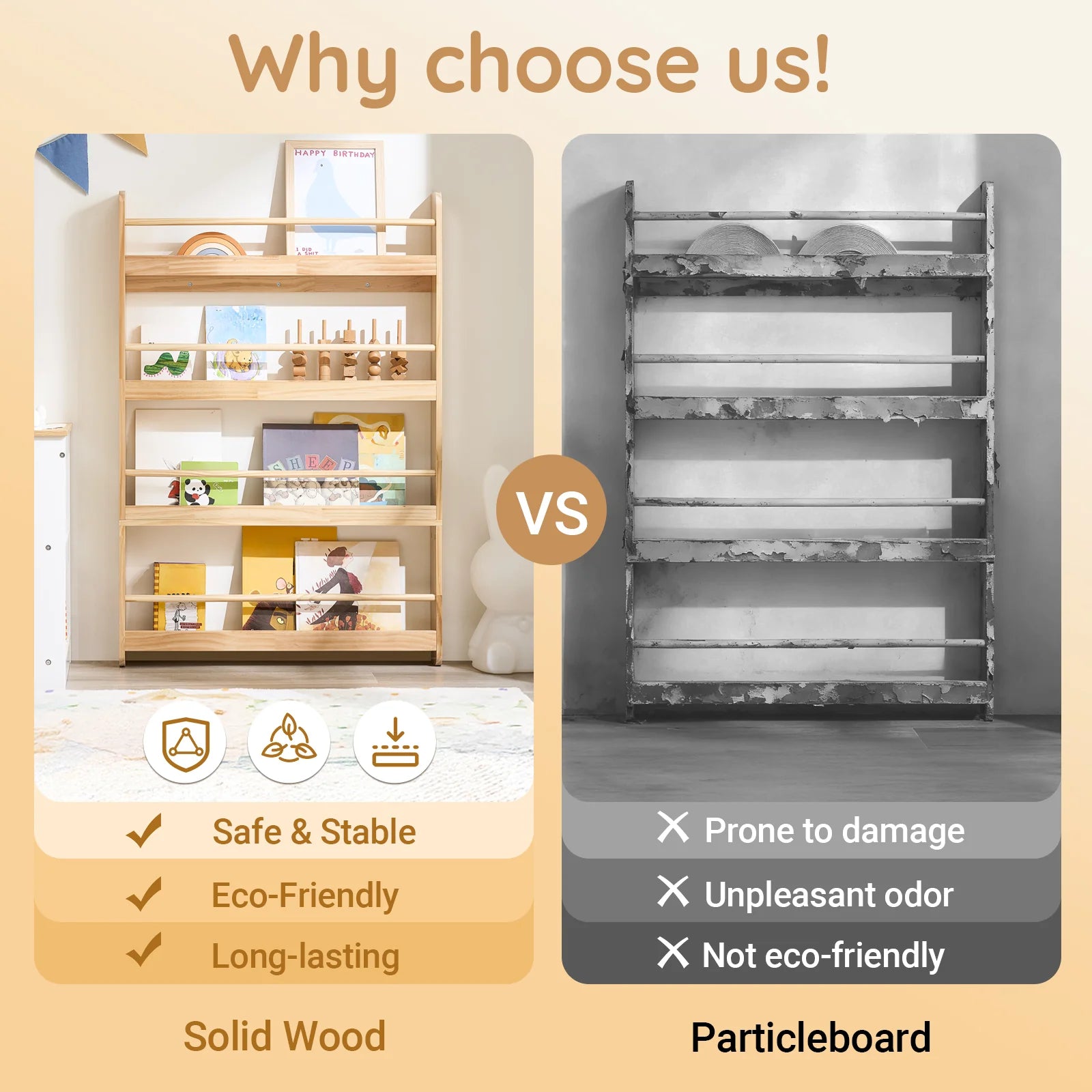 Denne børnebogreol med 4 åbne etager er perfekt til at organisere bøger, legetøj og dekorationer i dit barns værelse. Dens åbne frontdesign gør det nemt for børn at vælge og returnere deres bøger selvstændigt – perfekt til at opmuntre til rydelige vaner.