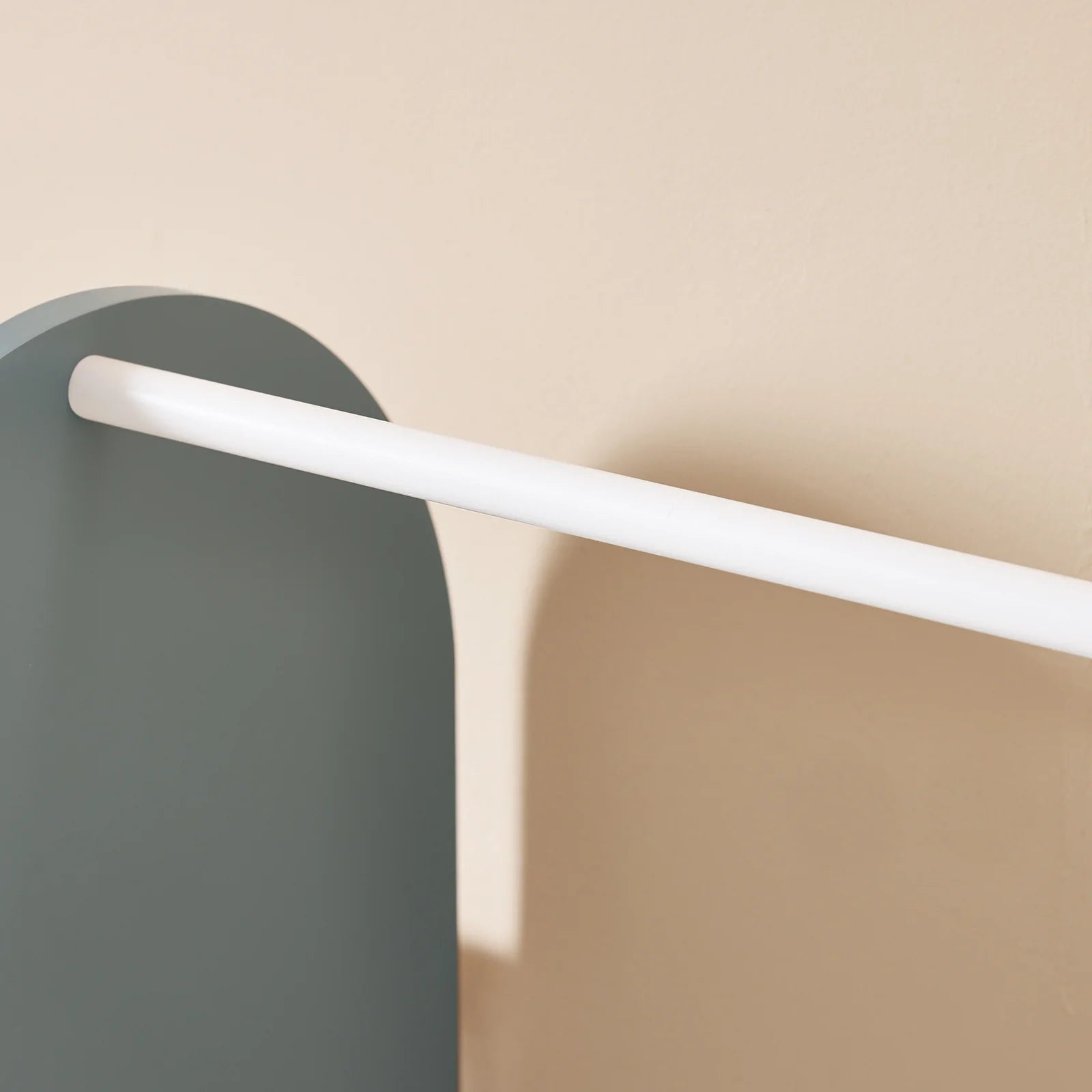 Børnegarderobestativet er fremstillet i højkvalitets MDF med en glat og skinnende finish, der er både slidstærk, formstabil og fri for skadelige stoffer. De bløde og afrundede hjørner er designet for at forhindre, at børn kommer til skade under leg.