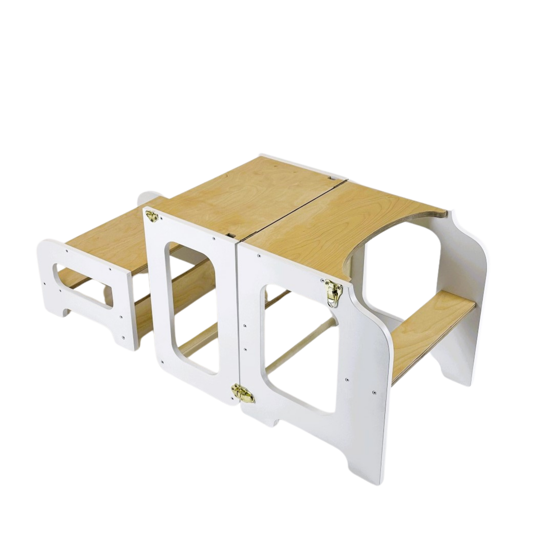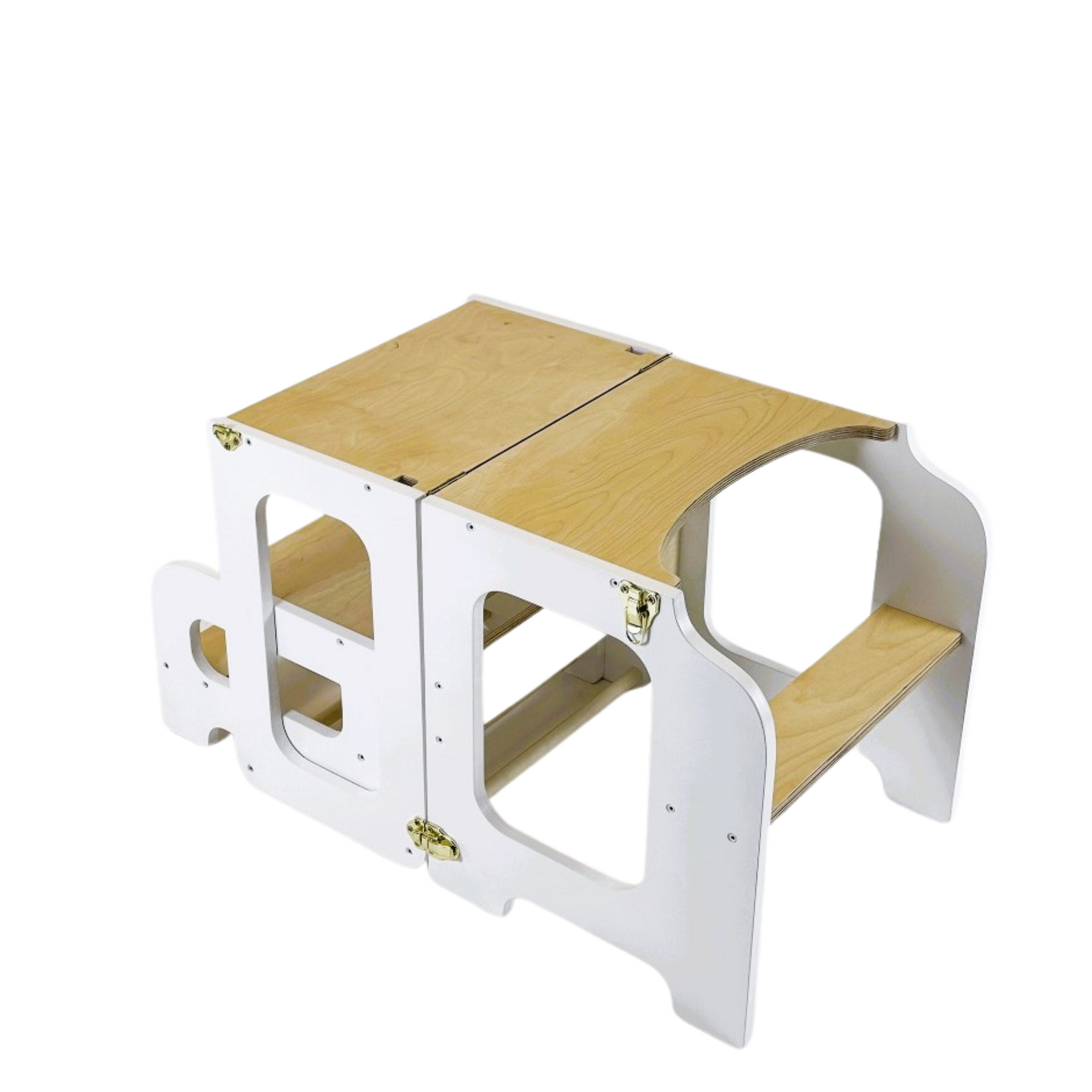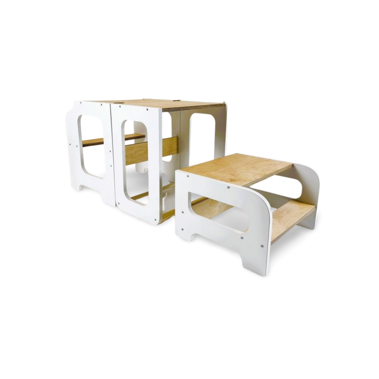 Denne lille træ-skammel er meget mere end bare en siddeplads – den er et omhyggeligt designet komplement til vores 4-i-1 Læringstårn. Uanset om du skal skabe et kreativt legehjørne, opmuntre til selvstændig tandbørstning eller sidde ned sammen til et stille øjeblik, er denne skammel designet til at passe ind i din families daglige rytme.