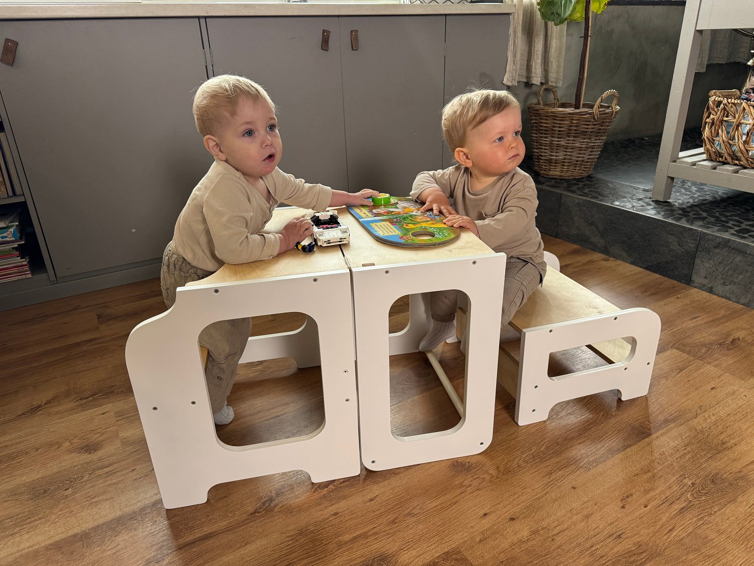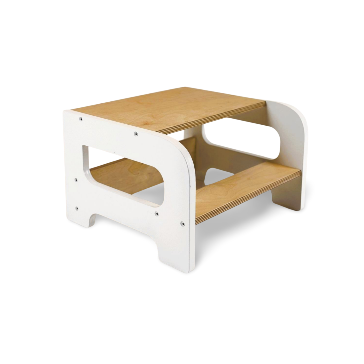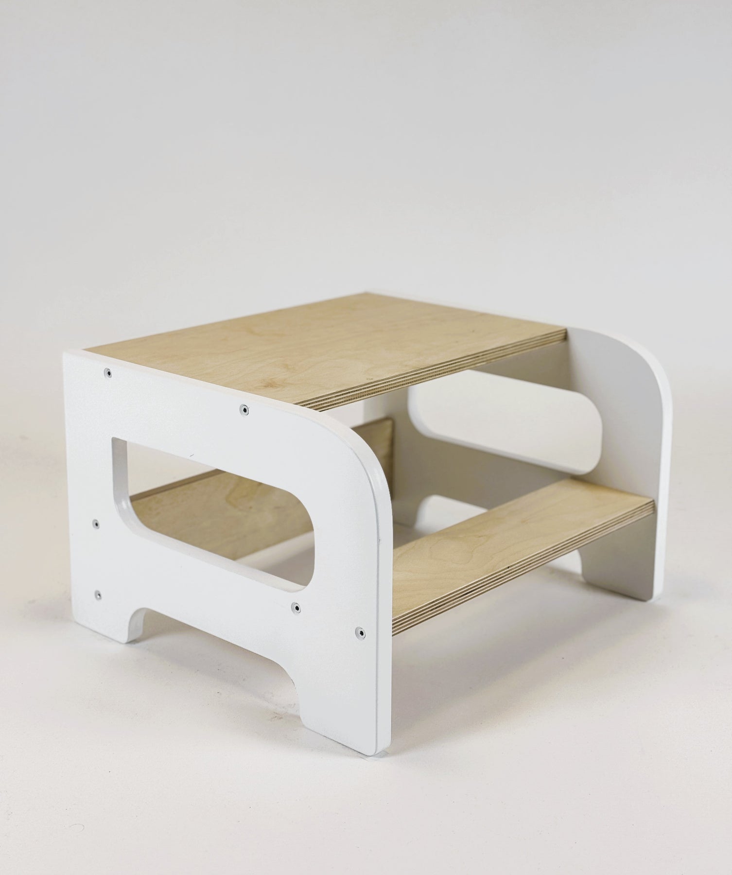 Og det bedste? Den er stærk og stabil nok til også at bære en voksen. Du kan bruge den til at sidde ved siden af dit barn, eller som et lille trin, når du skal nå noget på en høj hylde – ingen vaklen, ingen bekymringer.