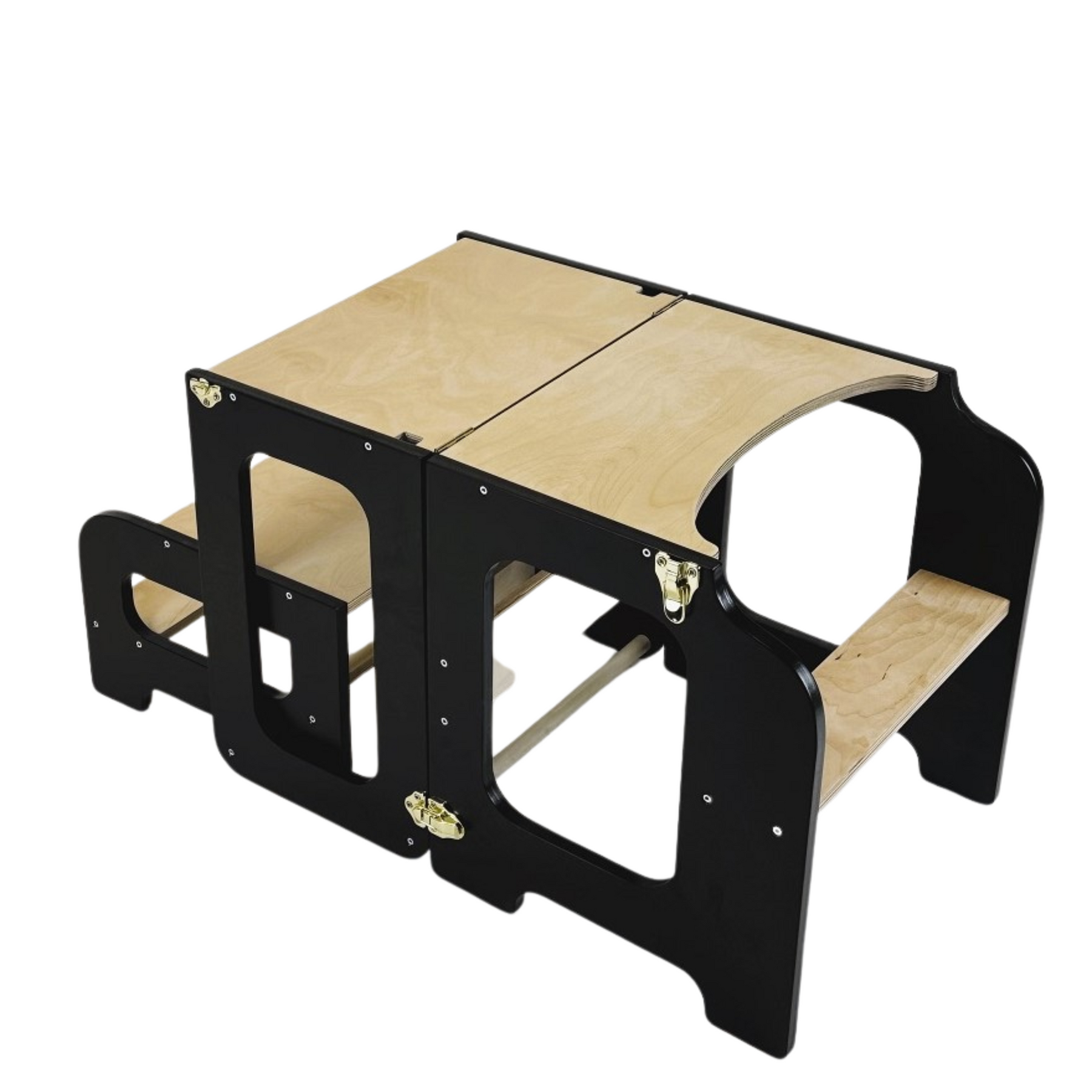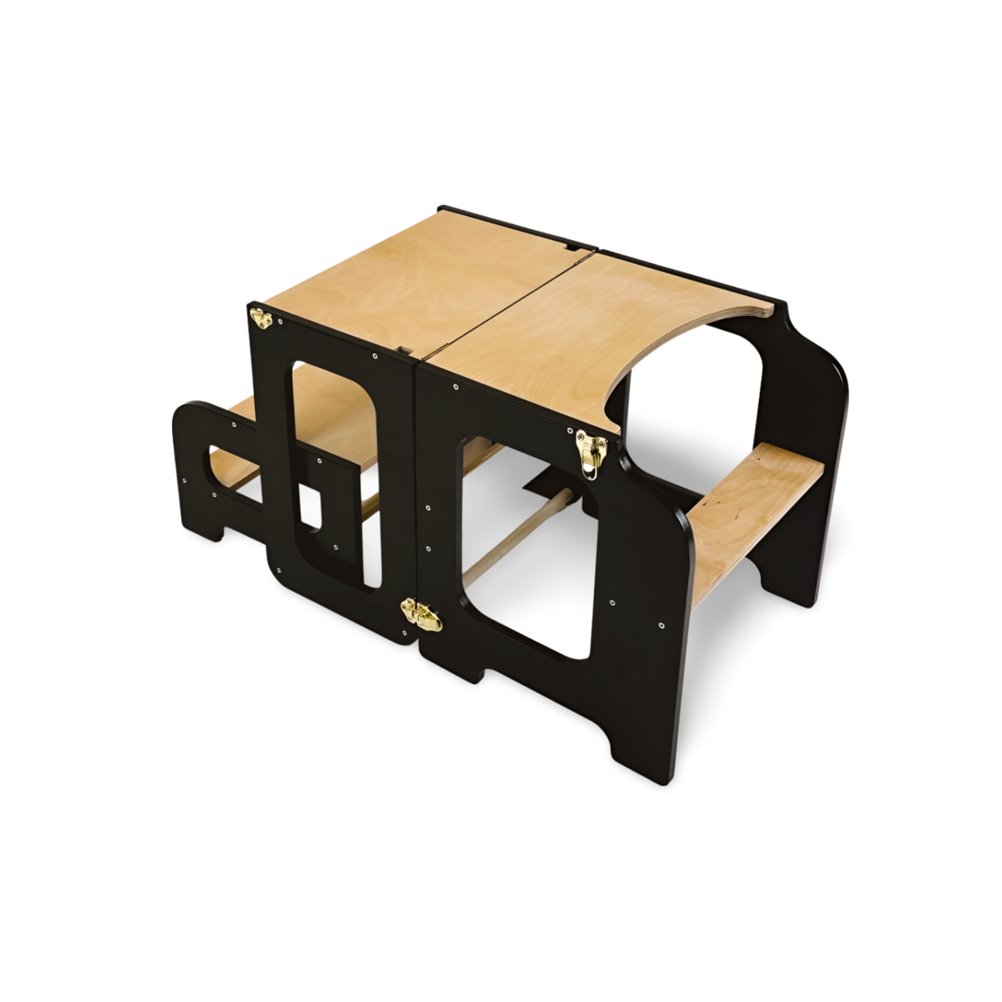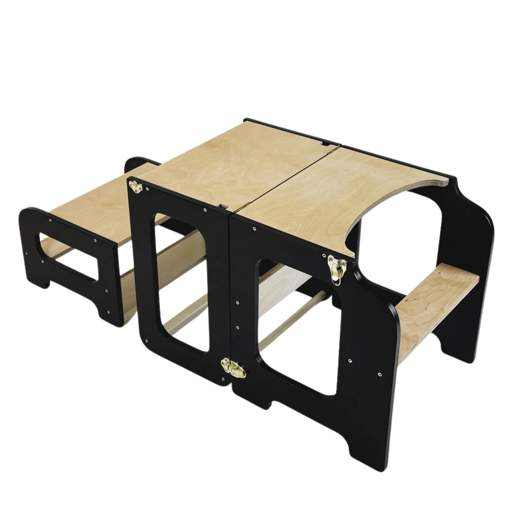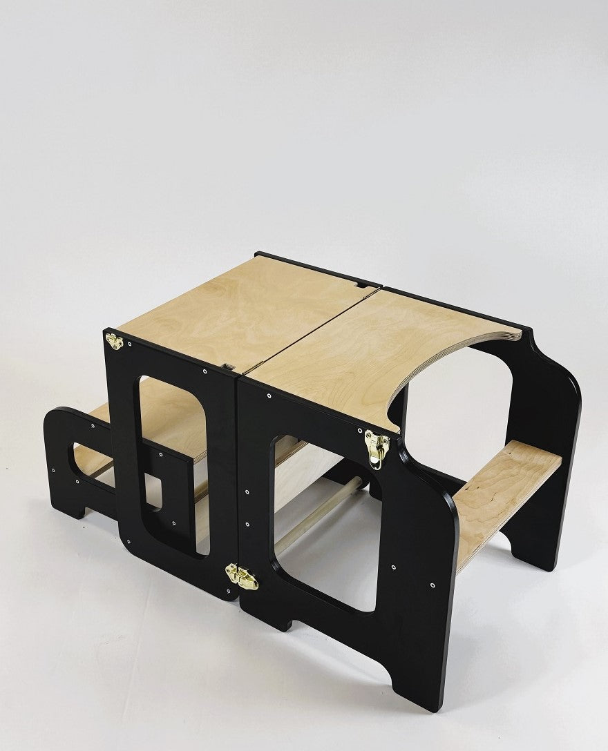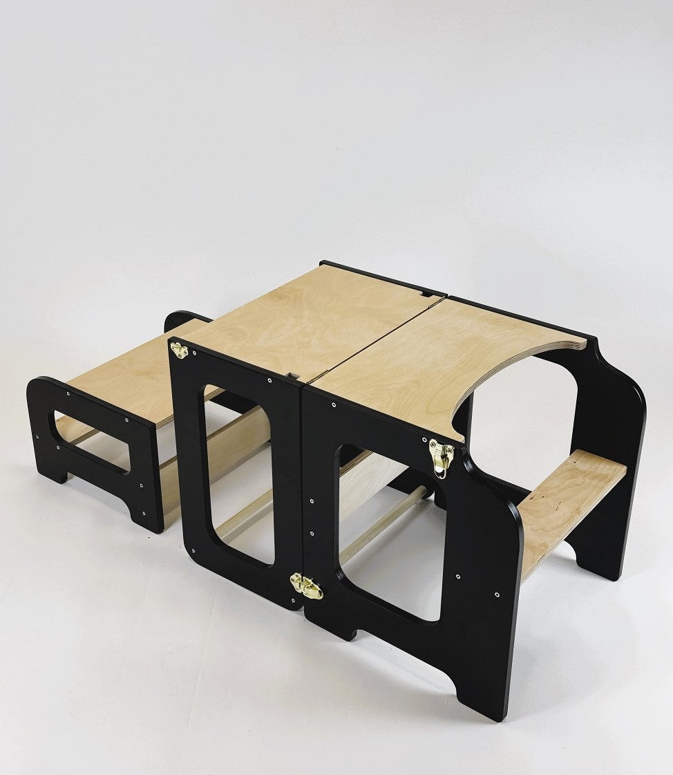 Læringstårn i træ, sort og naturfarvet