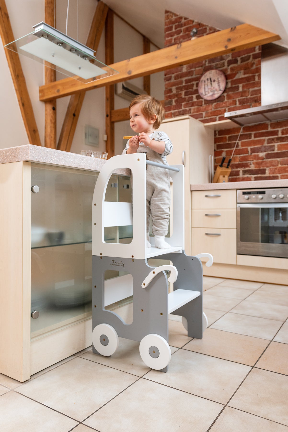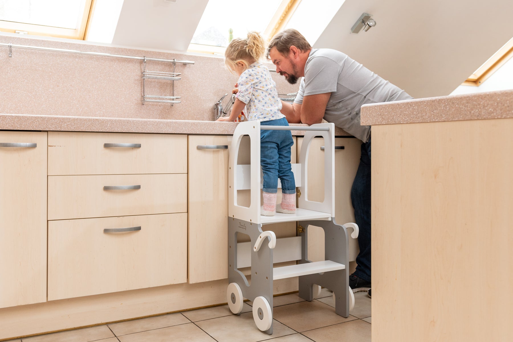 Denne montessori-inspirerede køkkentrapper, der nemt kan omdannes til bord og stol, er designet og skabt til læring, madlavning, klatring, siddeplads ved det store familiarbord samt spisning eller bare leg. Og det mest spændende er, at den ligner et legetøj og kan blive en god ven for dit barn.