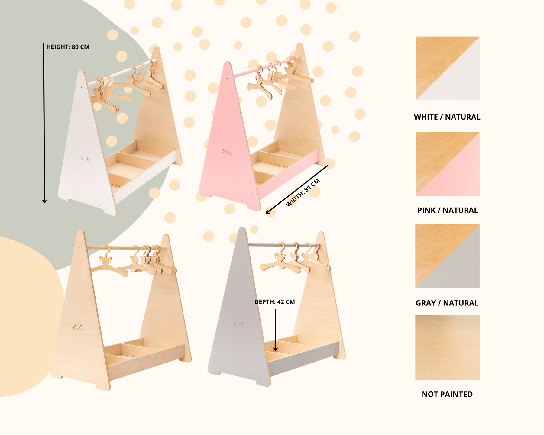 Opdag den perfekte løsning til et ryddeligt og funktionelt børneværelse. Vores Montessori tøjstativ er håndlavet med omhu og tjener ikke blot som et praktisk opbevaringssystem – det skaber også en følelse af selvstændighed og ansvar hos dit barn.