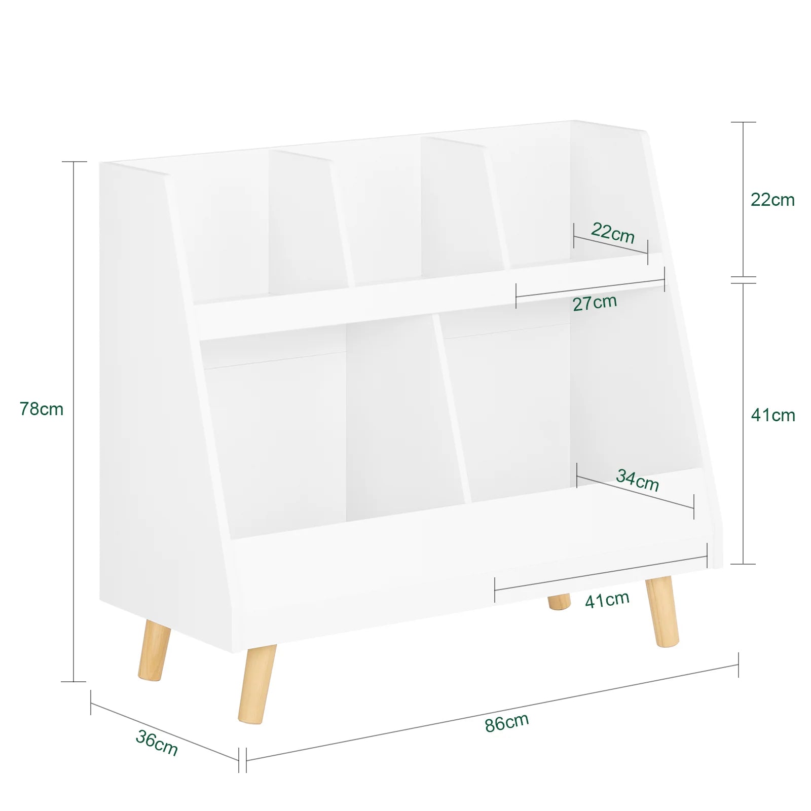 Hold børneværelset eller stuen pæn og organiseret med denne elegante og moderne bogreol. Den er udstyret med fem rum, der giver masser af plads til bøger, legetøj og andre småting.