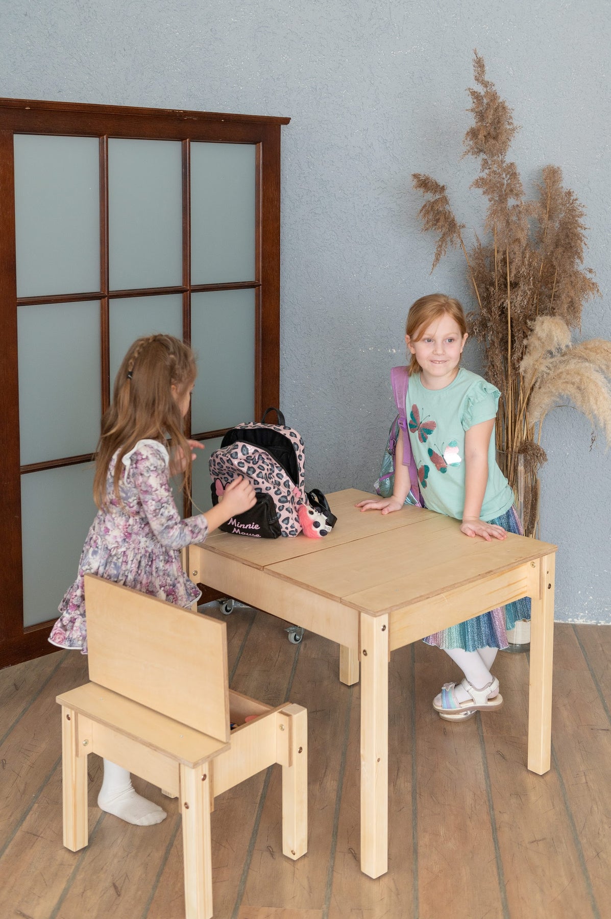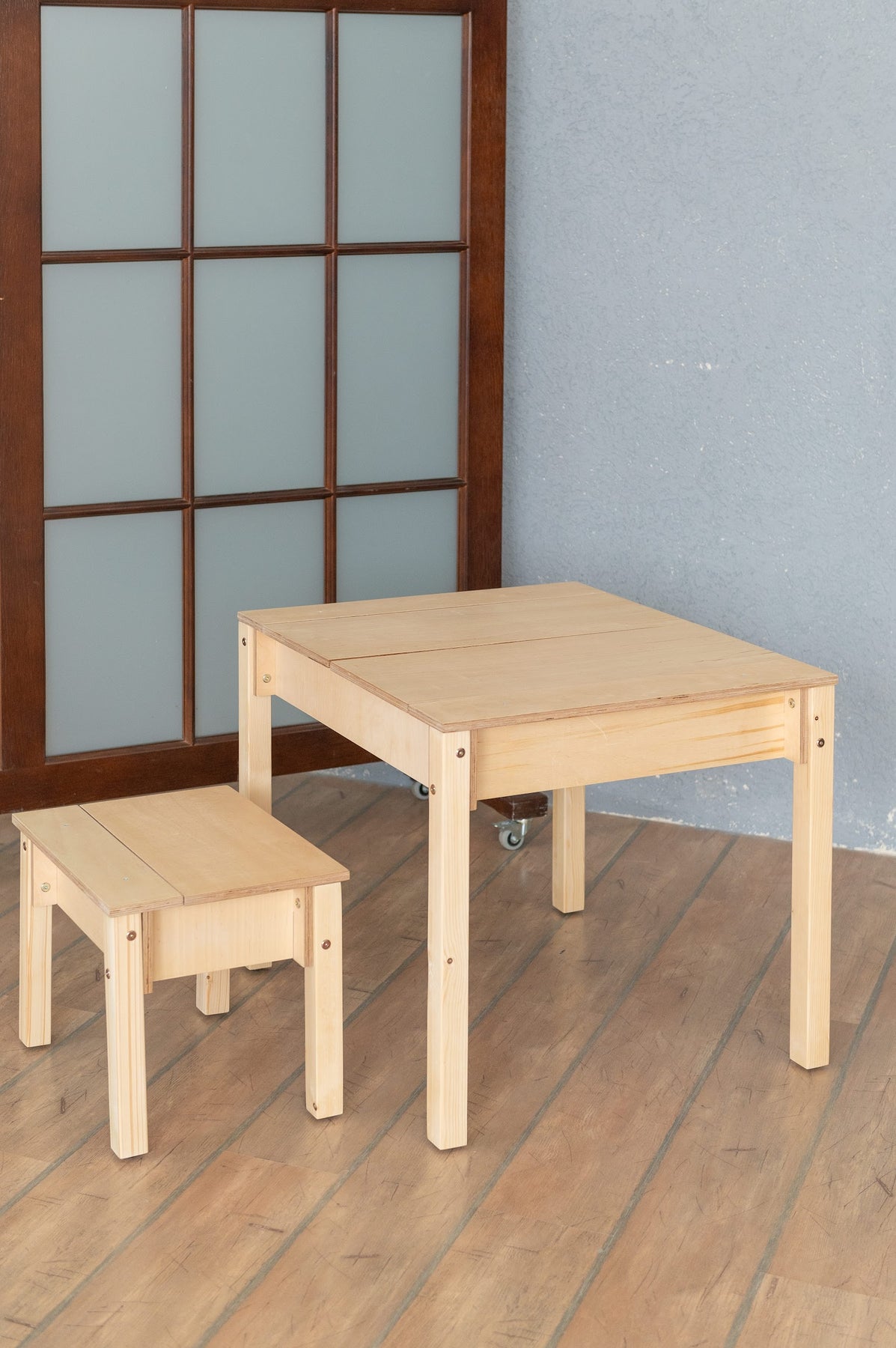 Sæt med smart opbevaringsbord og stol, naturfarvet
