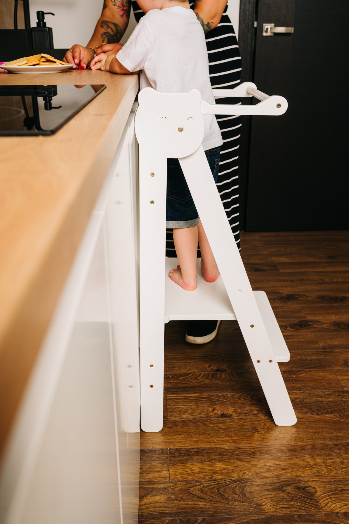 En praktisk, sammenklappelig, sikker og nem at bruge trappestige, designet til børn. Den ser fantastisk ud og er en perfekt hjælper for dit barn, som giver mulighed for at: