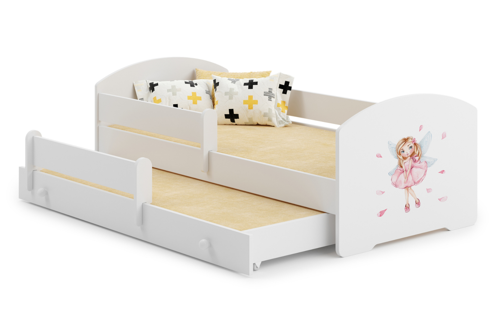 LUK II-modellen er en hvid Kobi-børneseng beriget med et muntert børneprint på forsiden, der perfekt kombinerer praktisk anvendelighed med æstetisk appel. Den indbyggede skuffe, der fungerer som ekstra soveplads, er den ideelle løsning til gæstebesøg eller søskendes overnatning sammen. Takket være det universelle hvide farveskema og det farverige print passer sengen perfekt ind i indretningen af både pige- og drengeværelser, hvilket giver den en unik karakter.