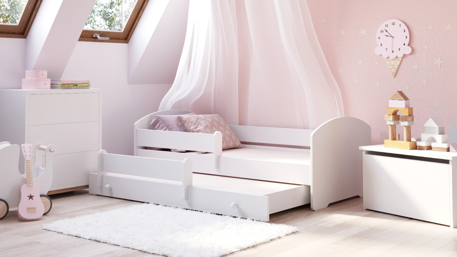 LUK II-modellen er en hvid, stilfuld Kobi-børneseng med en ekstra sovefunktion, der passer perfekt til ethvert rum. Med en indbygget skuffe, der kan omdannes til et andet soveområde, er sengen ideel til besøg af uventede gæster eller søskendeaftener sammen. Dens neutrale design passer til både et pige- og et drengeværelse og passer harmonisk ind i forskellige indretningsdesigns.