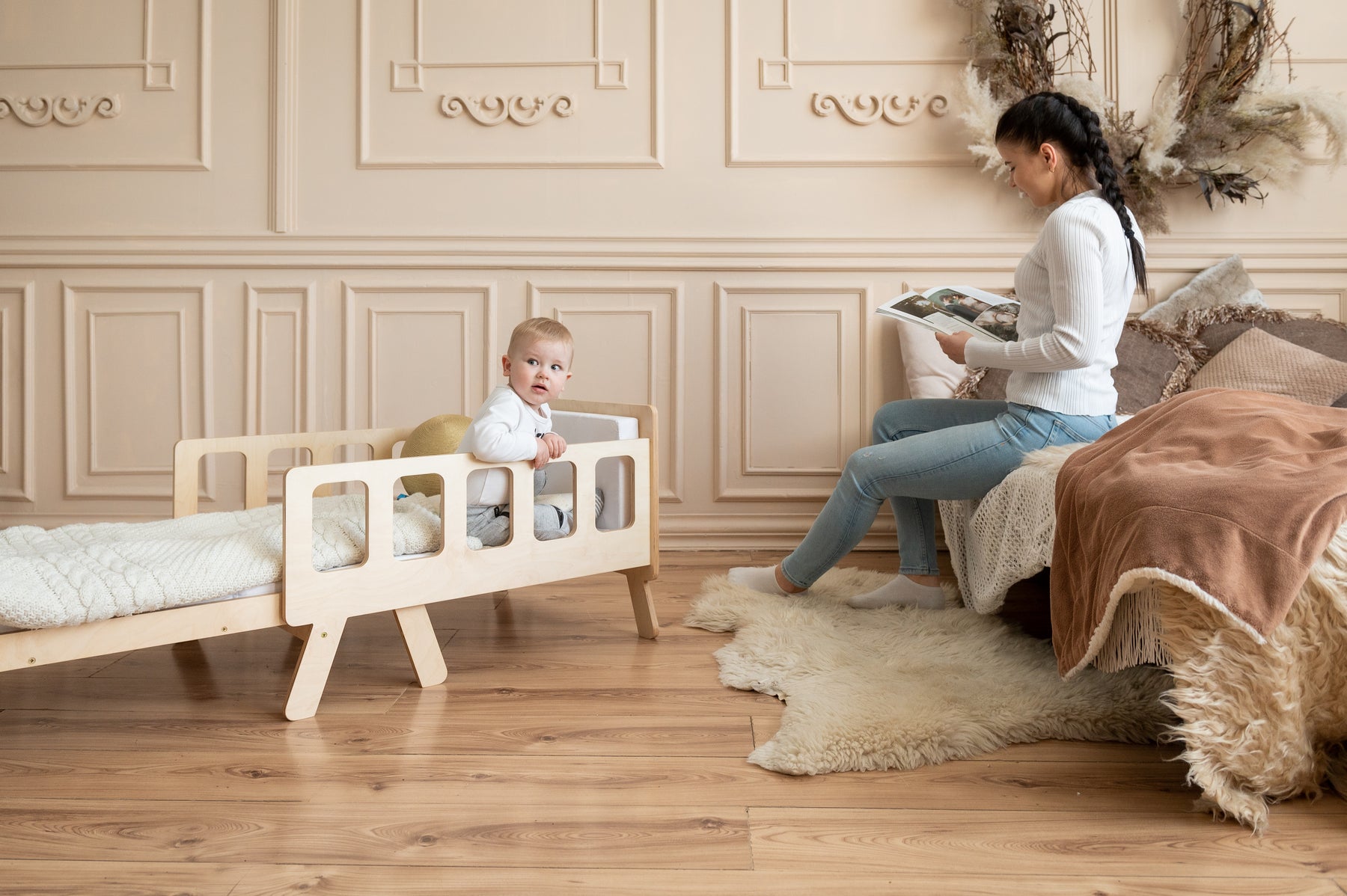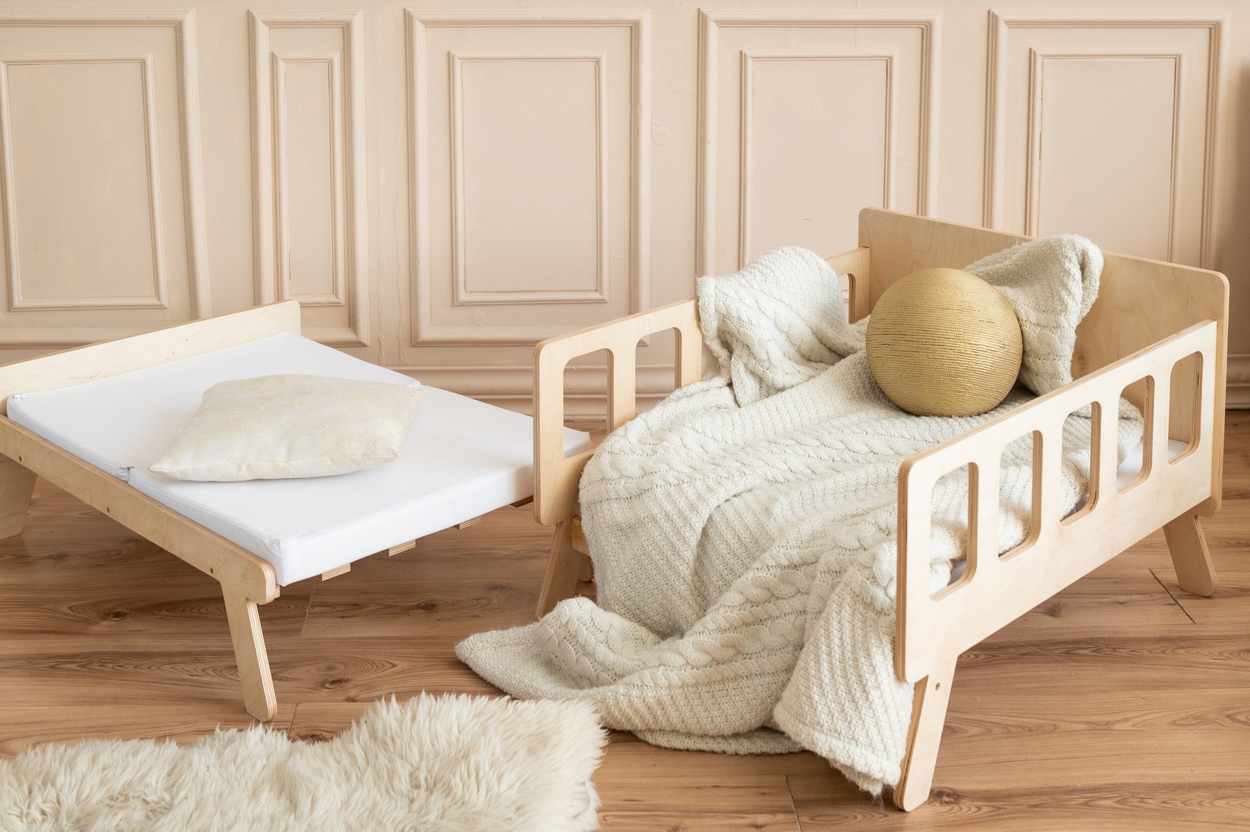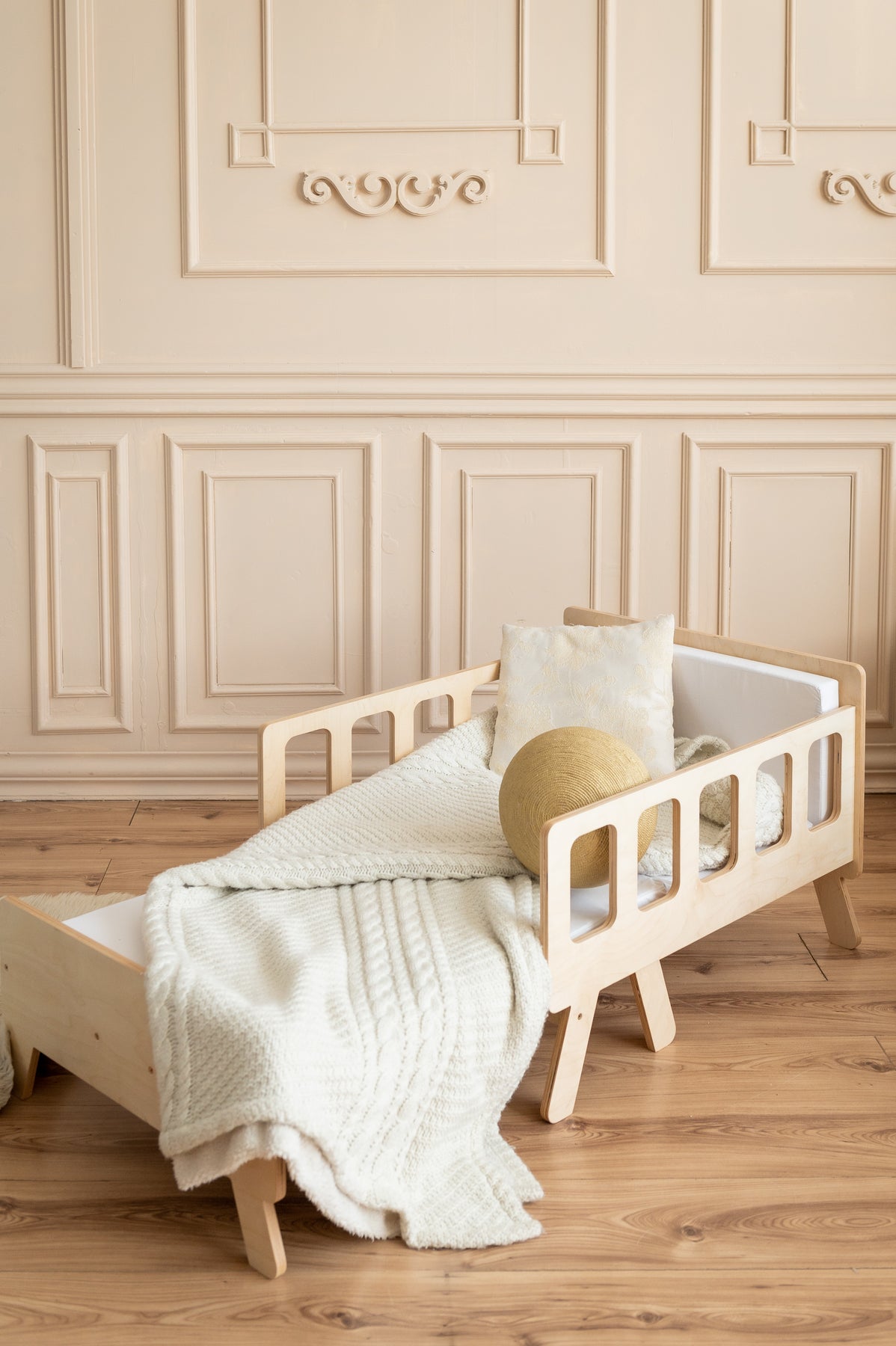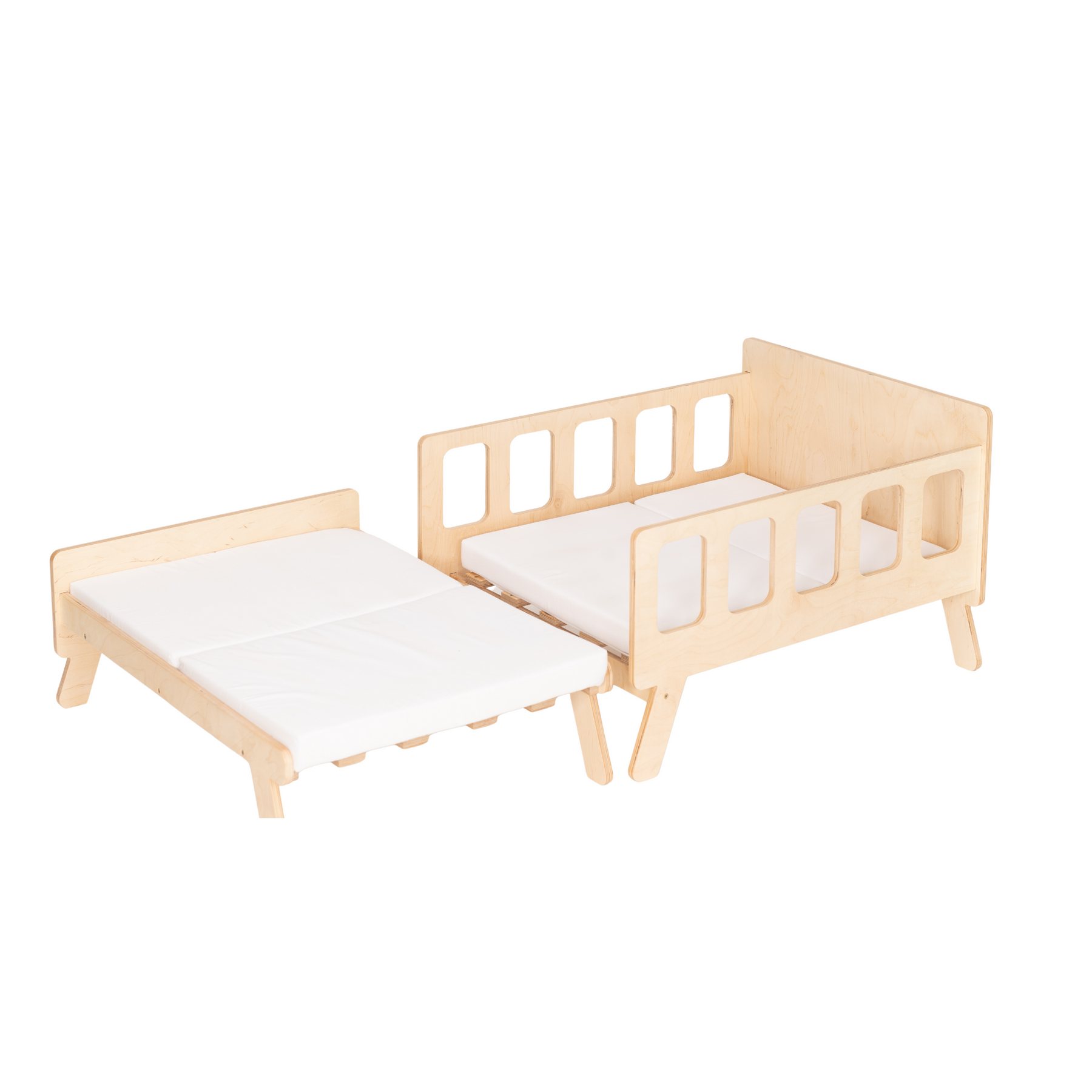 Smart børneseng der vokser med, naturfarvet