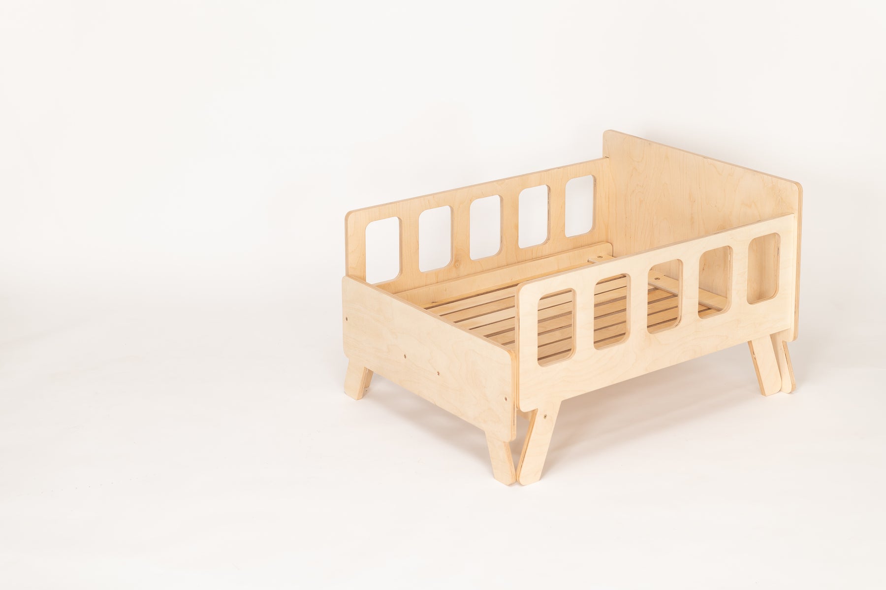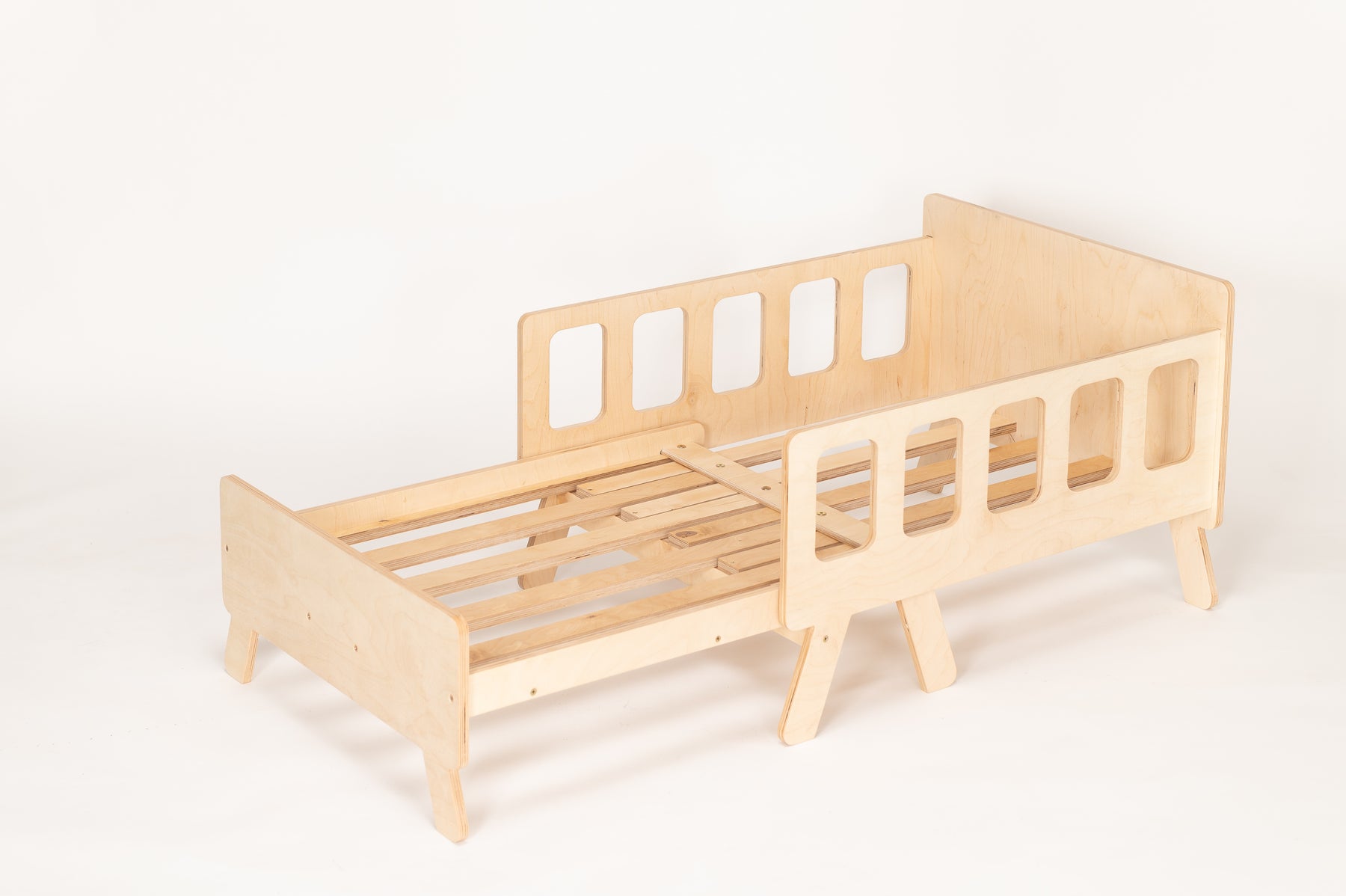 Smart børneseng der vokser med, naturfarvet, lakeret træ