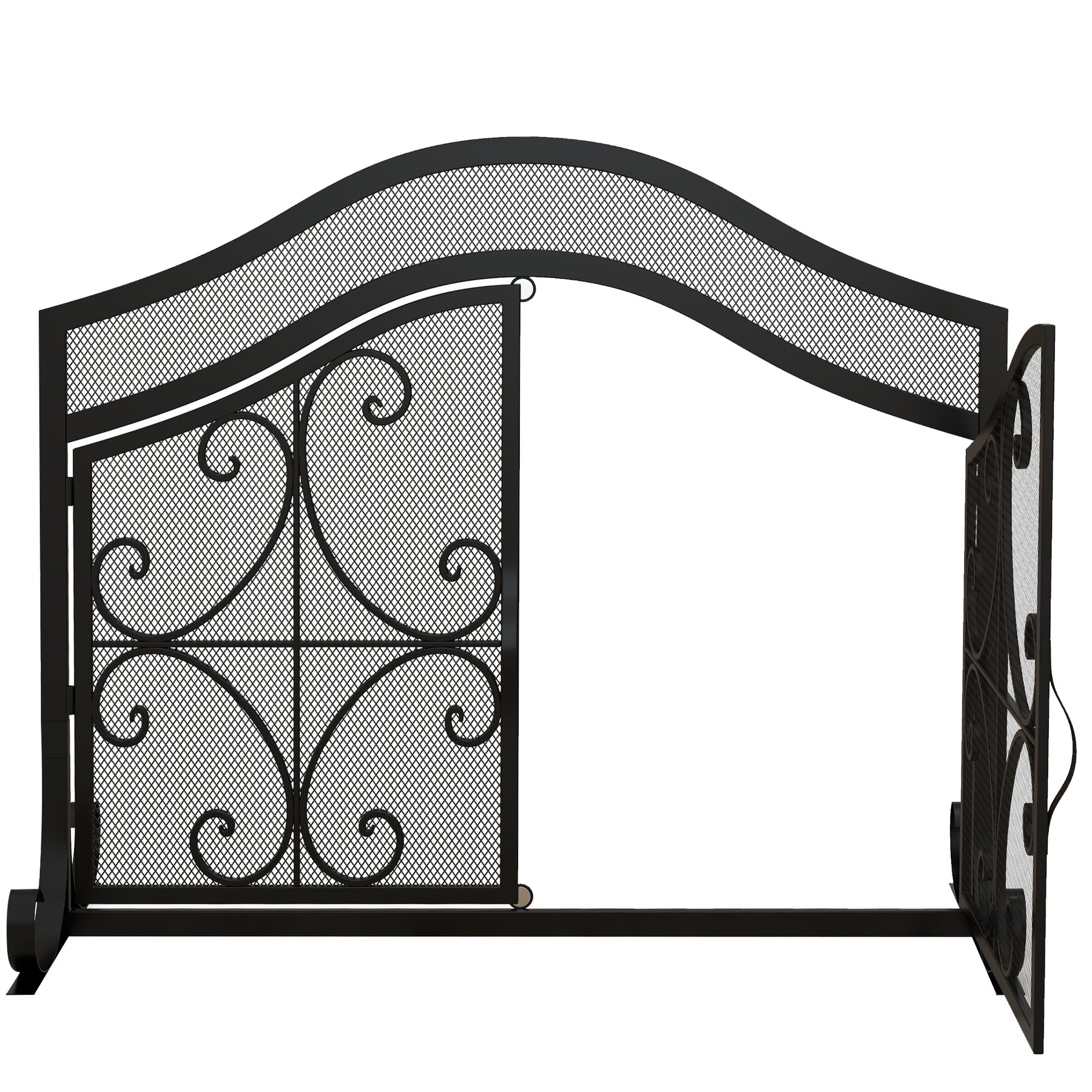 Giv din pejs et elegant præg med denne stilfulde pejseskærm. Det buede design og det detaljerede mønster kombinerer æstetik med funktionalitet og beskytter dit rum mod flyvende gnister. De praktiske dobbeltdøre med magneter og håndtag gør det nemt at tilføje brænde, indrammet af slidstærkt, pulverlakeret stål.
