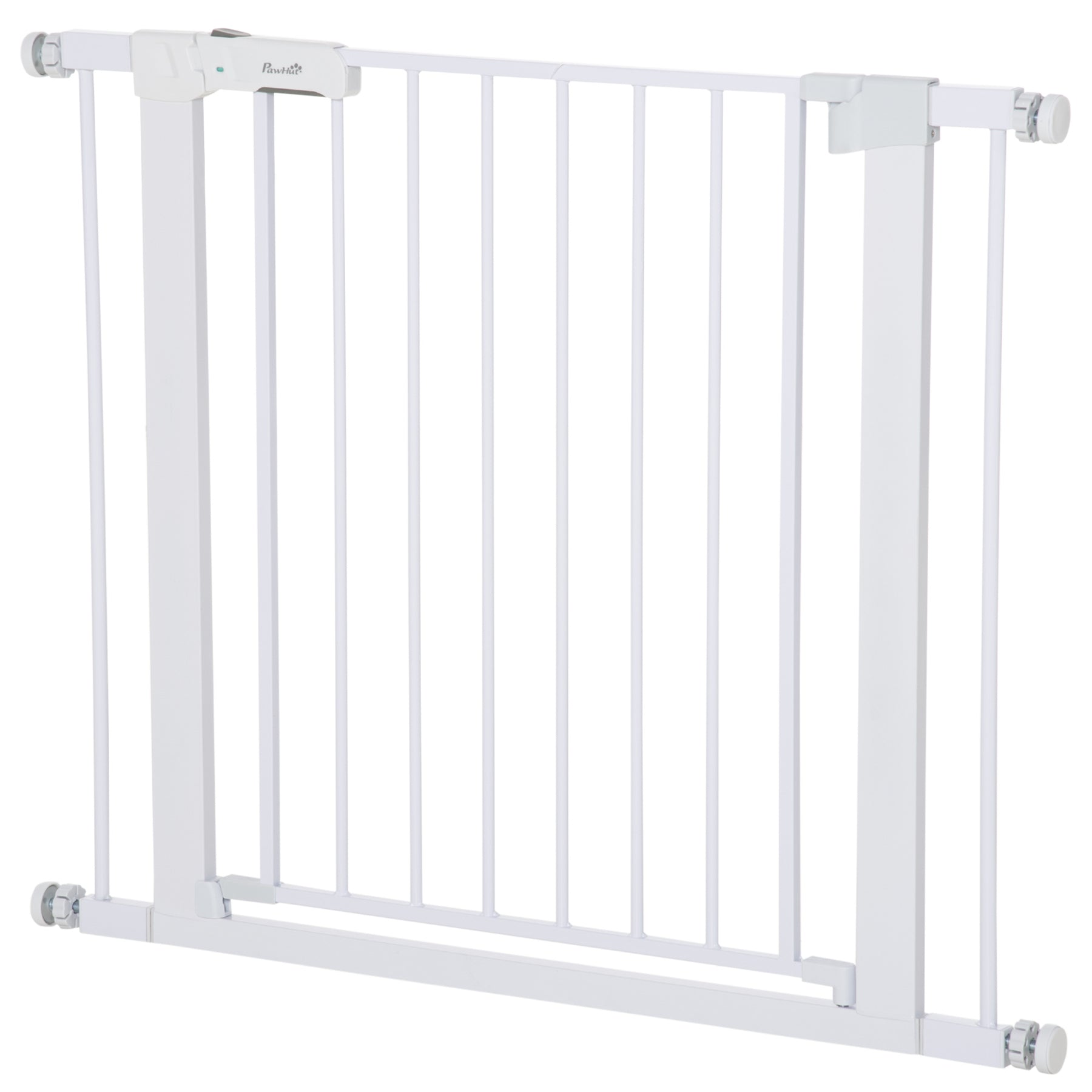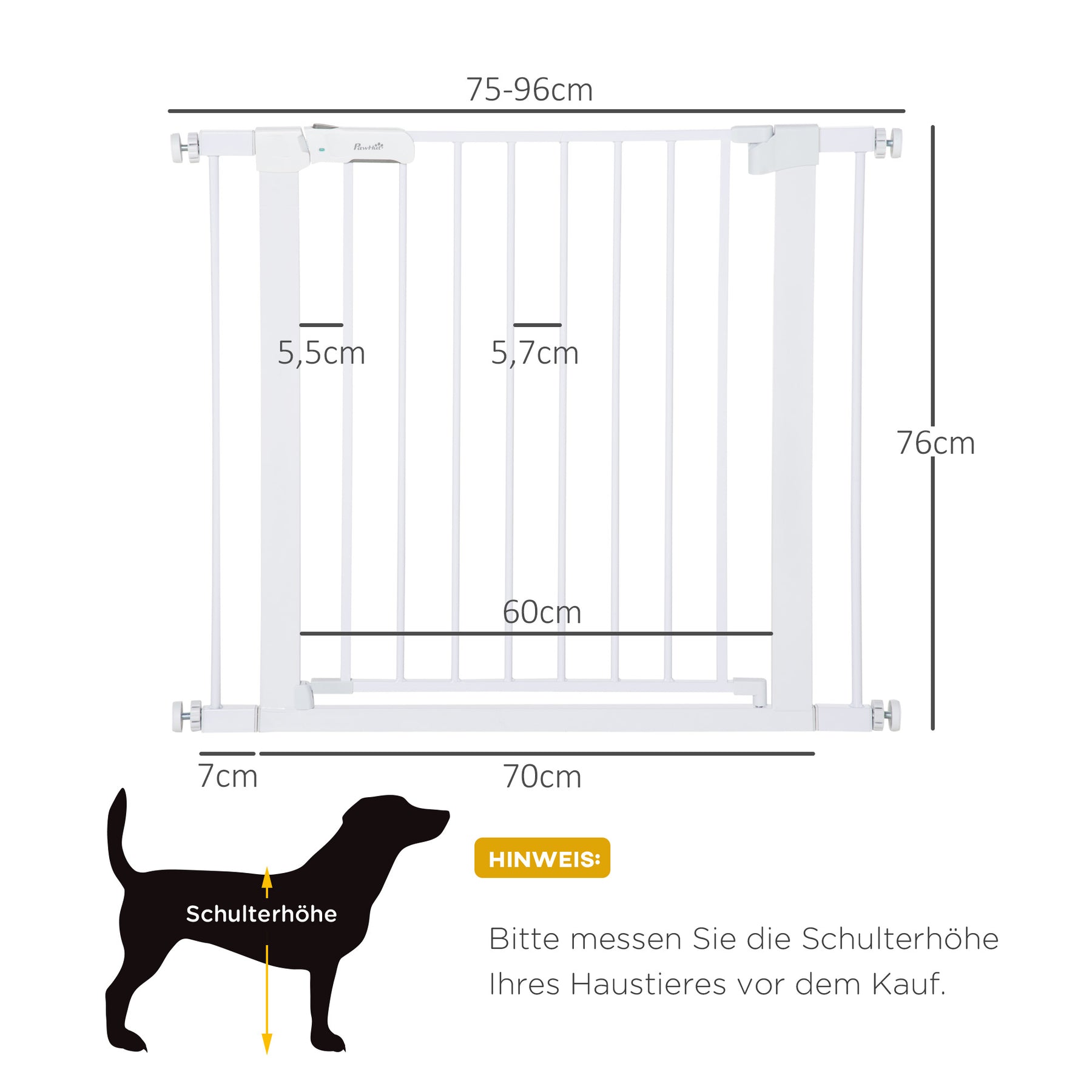 Leder du efter et hundegitter? Dette hvide metalgitter er en hurtig og nem løsning til at beskytte dine hunde og gøre et ønsket område utilgængeligt for dem. Installation er en leg med den smarte spændemekanisme; du skal blot fastgøre gitteret mellem to vægge. Med sin justerbare bredde (75-96 cm) passer det i næsten enhver døråbning og gang.