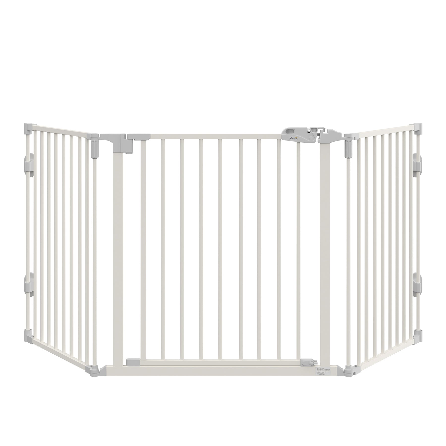 Hundebarrierer sikkerhedslåge kæledyrssikkerhedslåge justerbar foldbar pejsrist med automatisk lukning 3 paneler til komfur vægmonteret/fritstående hvid 202,5 x 76 cm