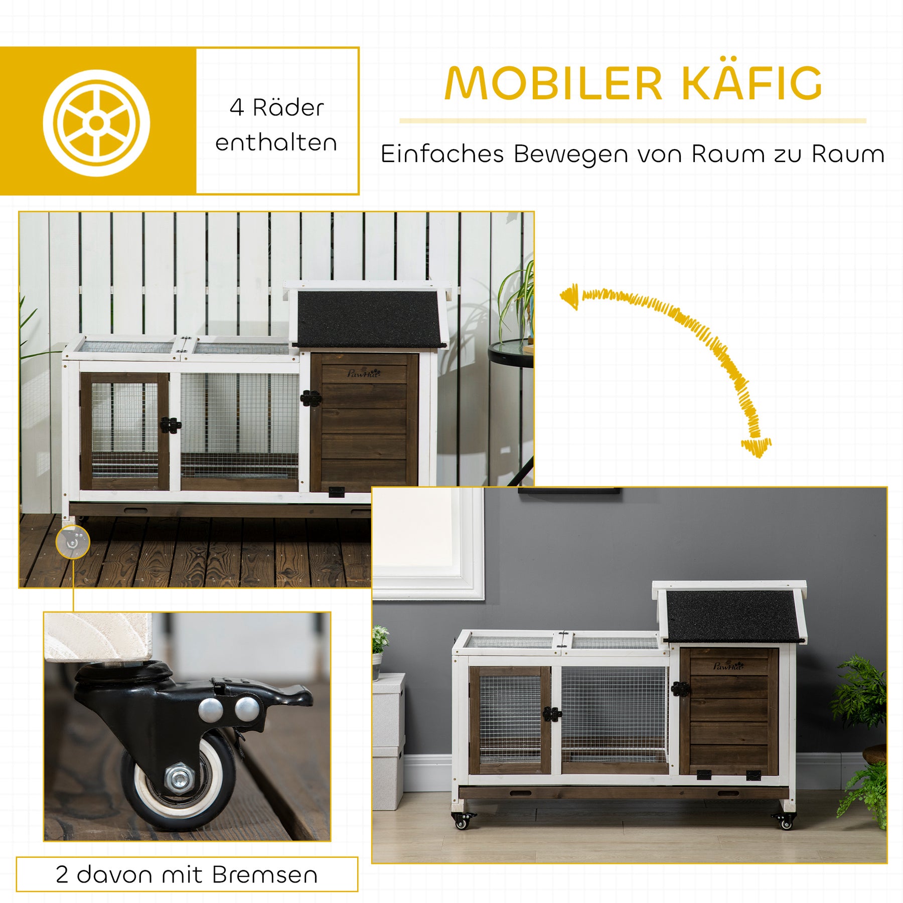 Rengøringen er en leg takket være det hængslede tag og den udtrækkelige bund. Med fire hjul kan buret nemt flyttes, hvilket gør det ideelt til både indendørs og udendørs brug.
