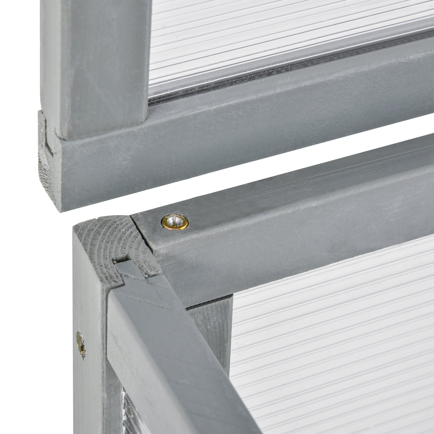 Skab dit eget lille haveparadis med dette mini-drivhus, der er perfekt til trange rum og afslappede områder. Den robuste konstruktion beskytter dine planter mod fugle og vejrfænomener, så de kan vokse sundt og stærkt. Det hængslede tag sikrer optimal ventilation, mens de gennemsigtige paneler tillader sollyset at trænge igennem.