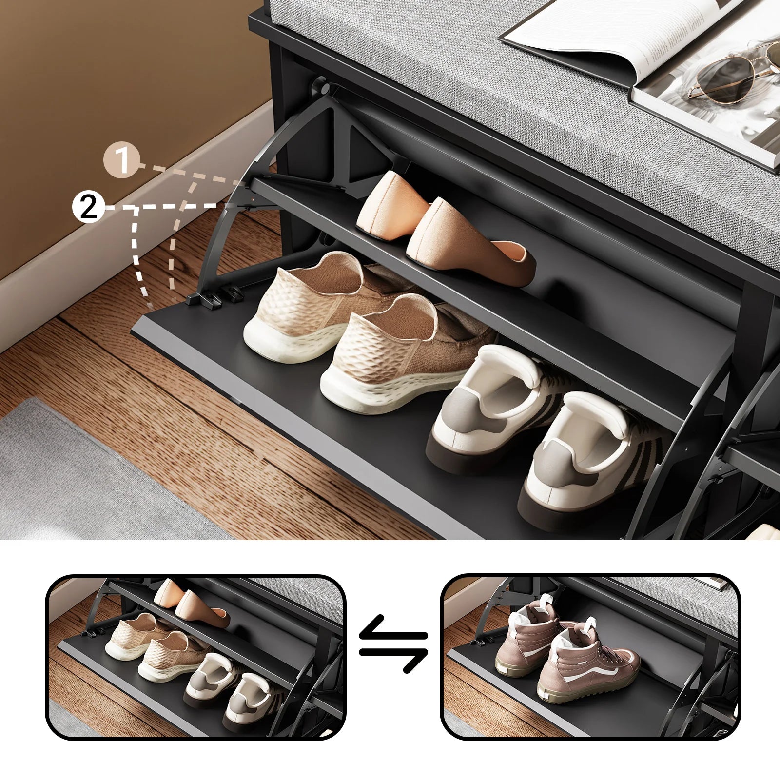 En ideel løsning til at holde orden i entréen med en komfortabel siddeplads og et elegant udseende – perfekt til daglig brug i hjemmet!