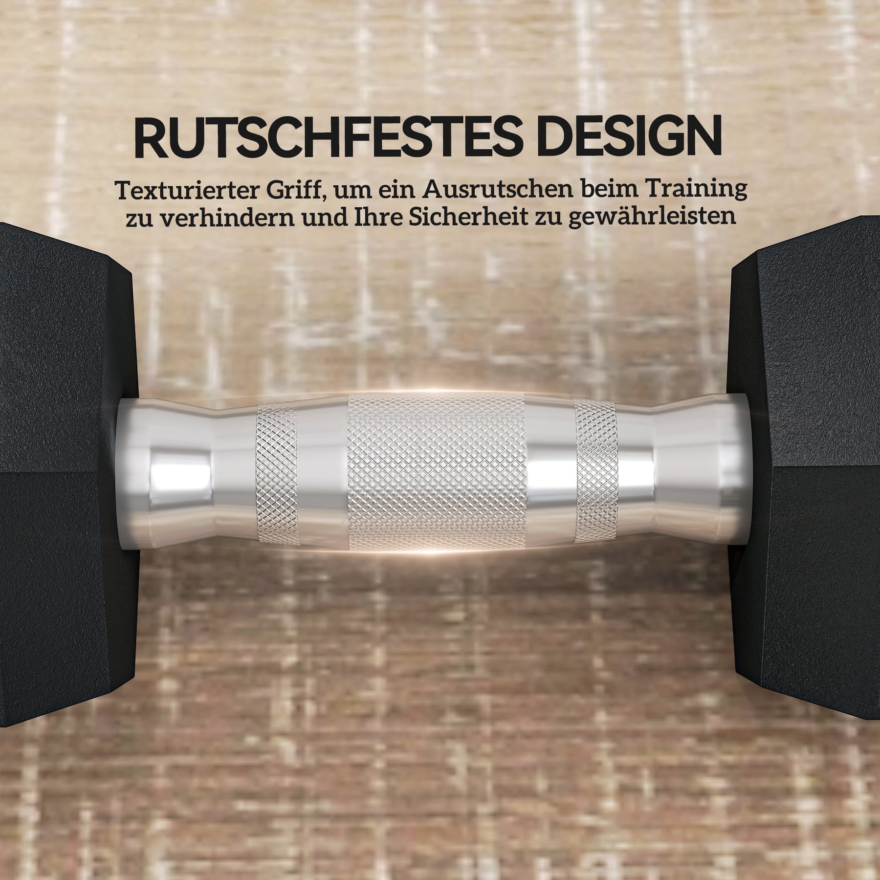 Denne sekskantede håndvægt med gummi er den perfekte løsning til at optimere din fitnessrutine, uanset om du træner derhjemme, i fitnesscentret eller på kontoret. Den holdbare konstruktion af metal og gummi beskytter dit gulv mod ridser, samtidig med at rillerne sikrer et sikkert greb under træningen.