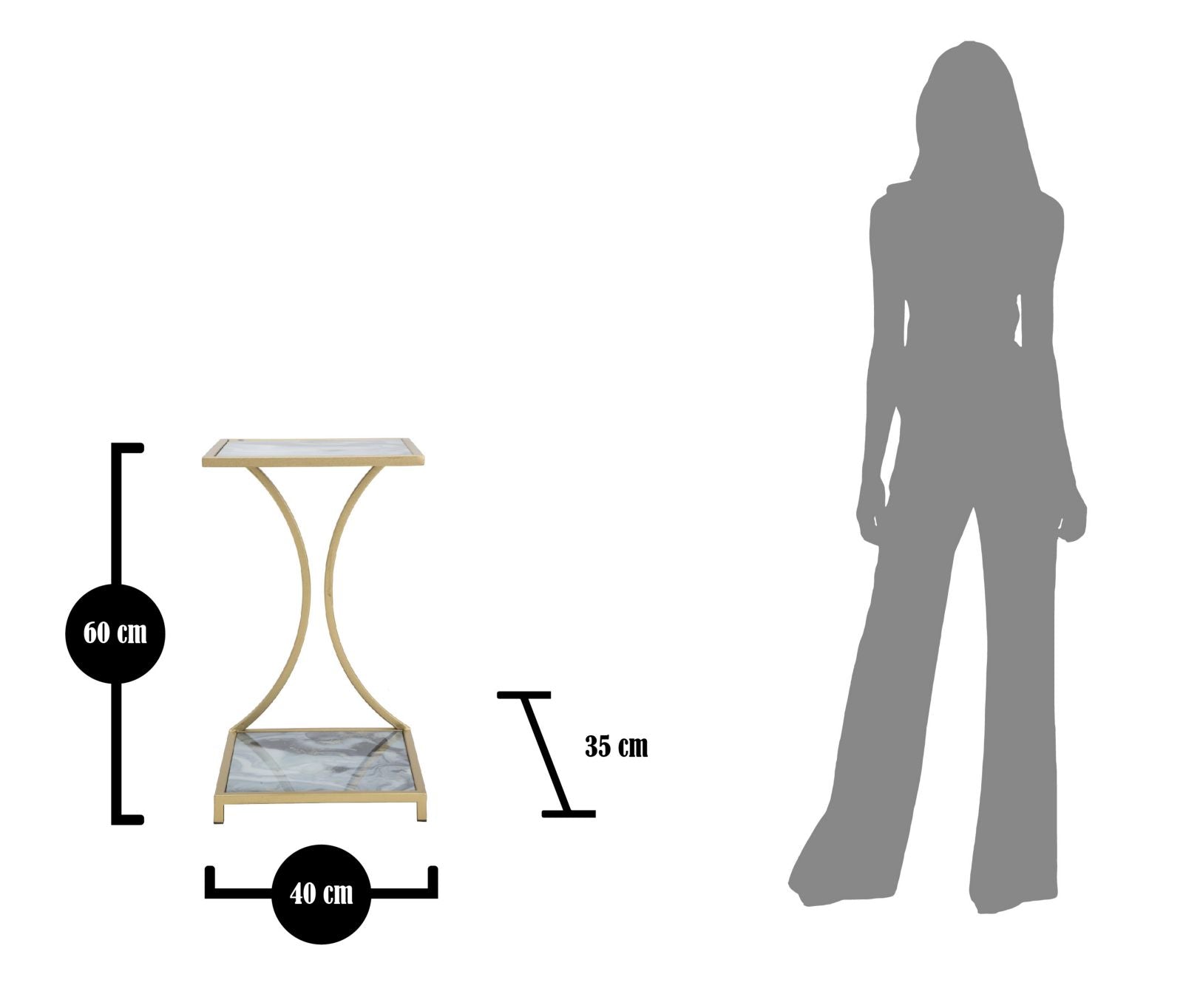Med sine mål på 40x35x60 cm er dette sidebord ideelt til stuen, entréen eller på kontoret. Det er det perfekte valg for dig, der ønsker en unik og smagfuld detalje, der kombinerer glamour med tidløs elegance.