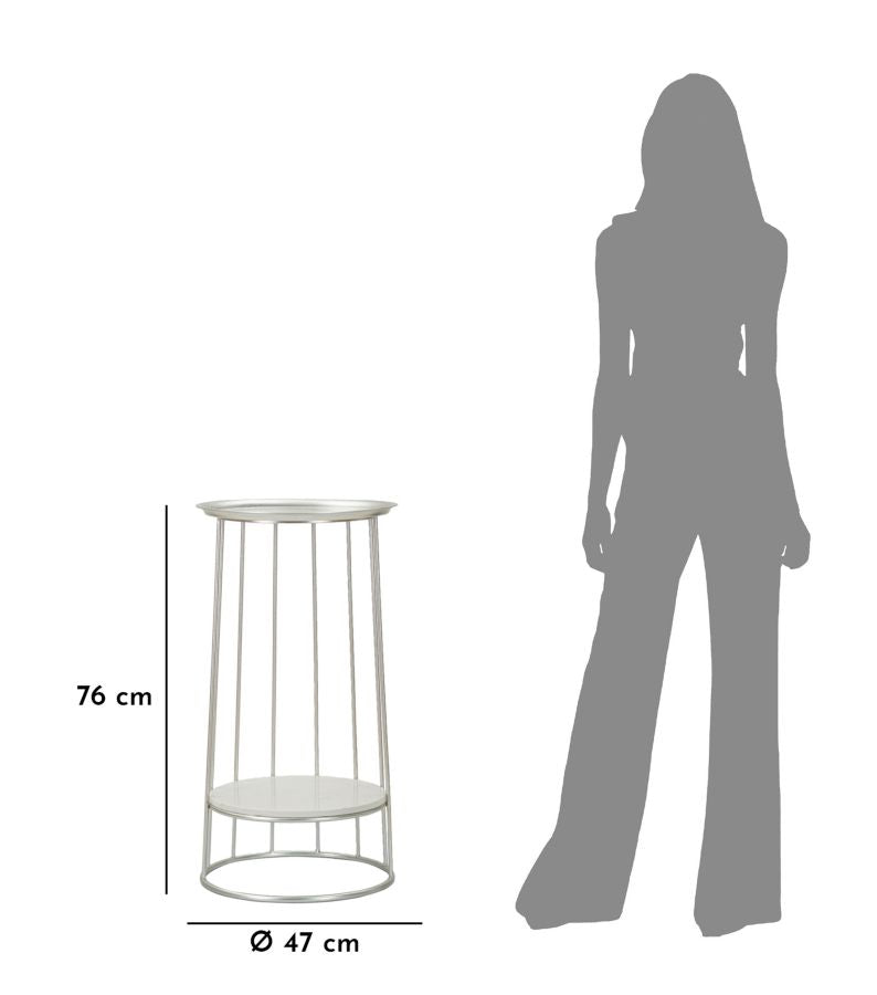 Med sine mål på 40 cm i diameter og 76 cm i højde er dette sidebord ideelt til stuen, entréen eller på kontoret som et iøjnefaldende element. Det er et ideelt valg til dig, der ønsker en unik og smagfuld detalje i hjemmet.