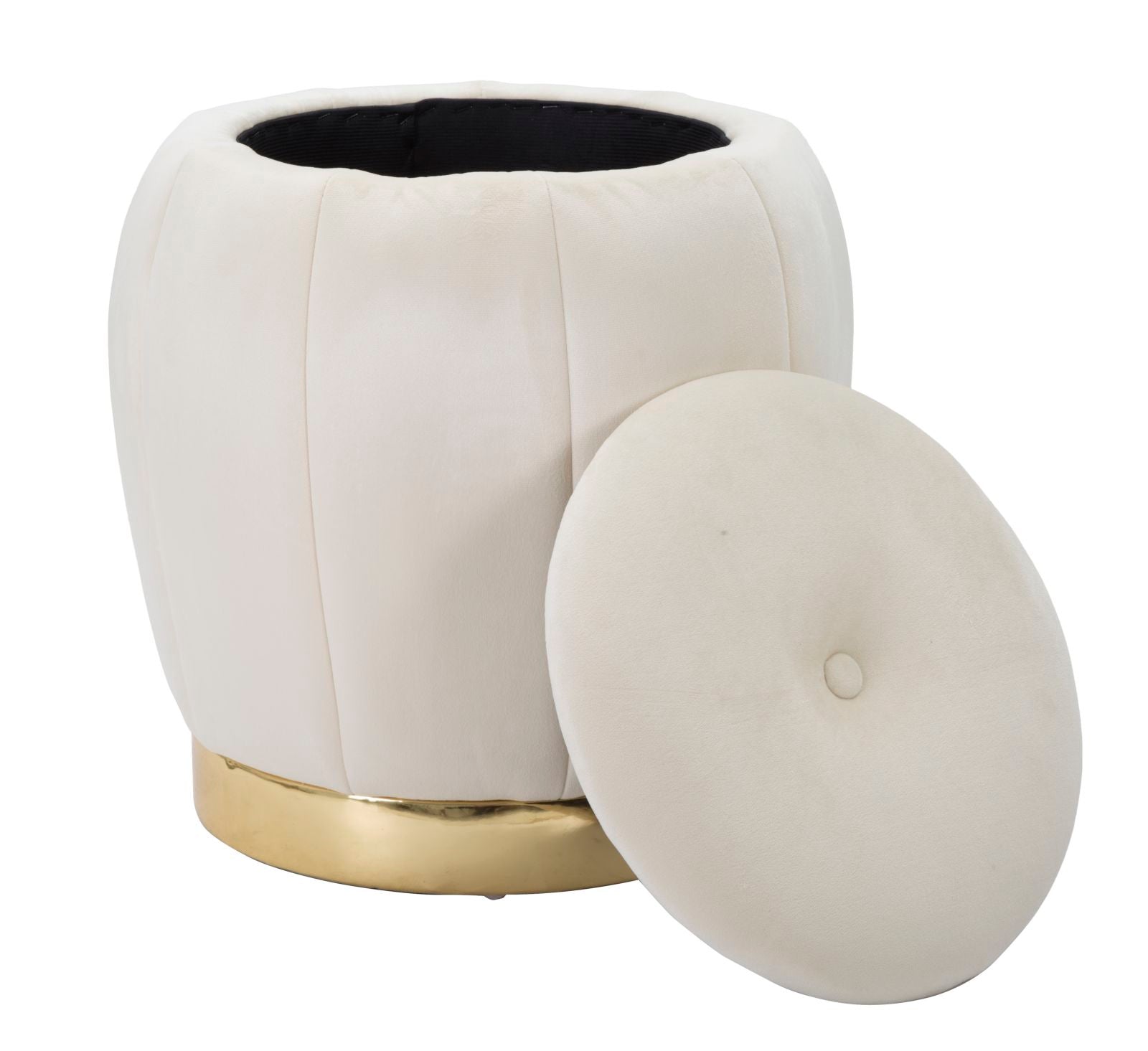 Designet trækker inspiration fra Hollywood-divaernes sminkeværelser. Den er beklædt med smukt, cremefarvet fløjl og har en elegant guldfarvet finish, der smelter sammen i et unikt og eksklusivt design. Udover at være en majestætisk siddeplads, har den også et praktisk opbevaringsrum.