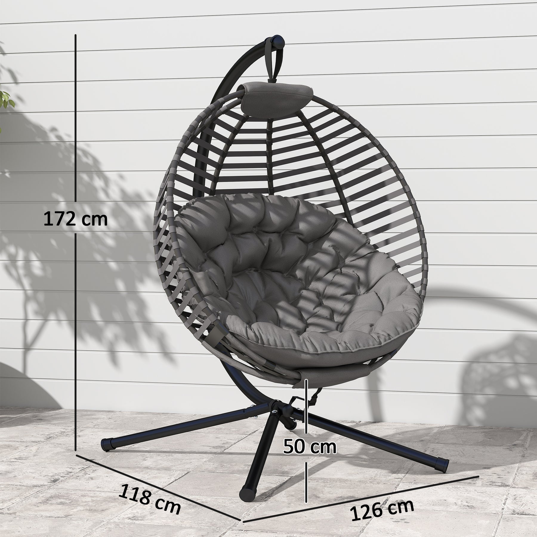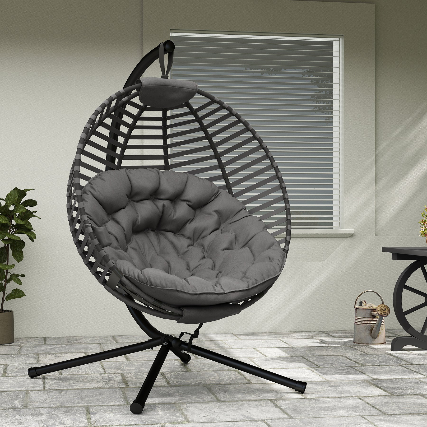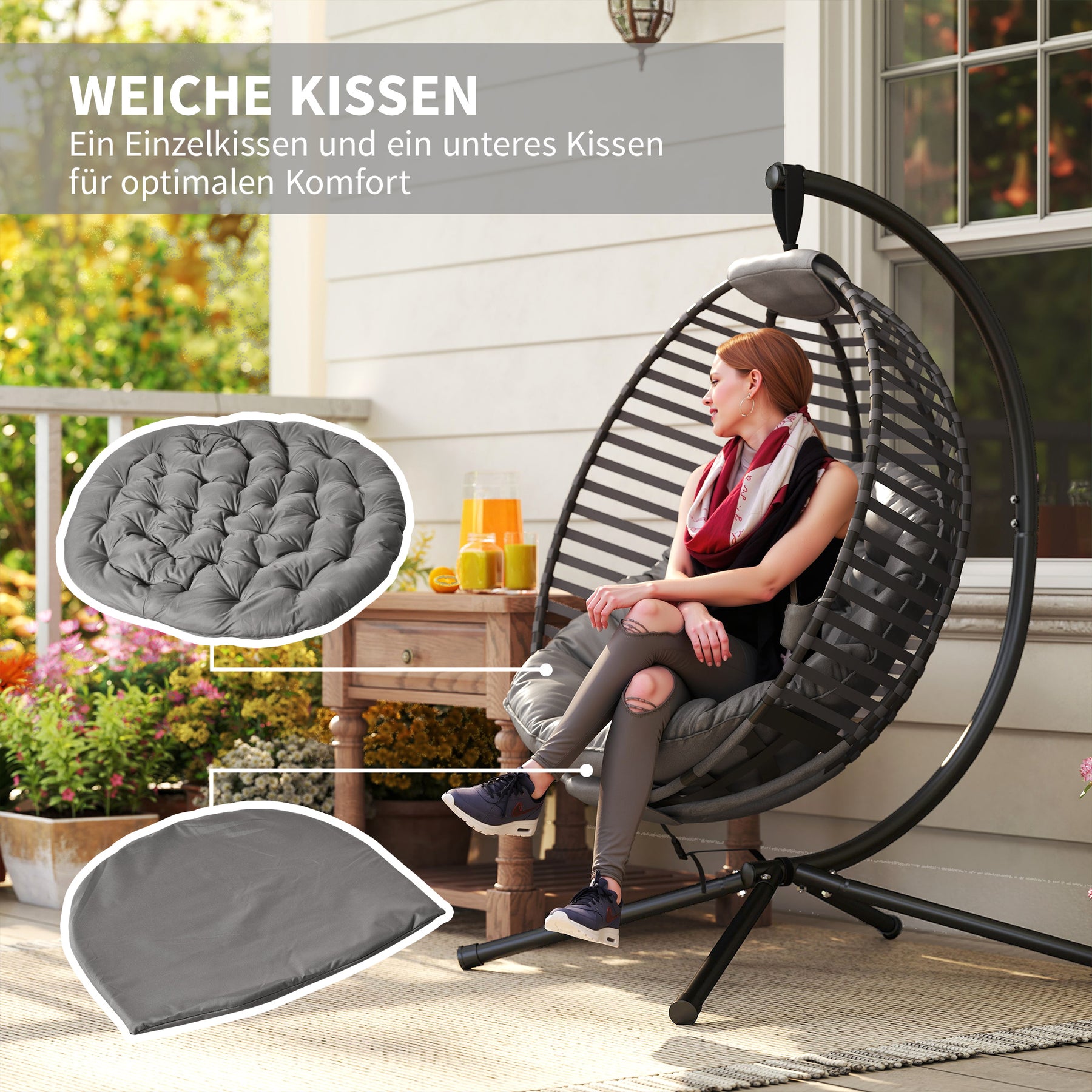 Tilbring dagen med følelsen af at svæve på skyer i denne hängestol! Det buede ryglæn, det rummelige sæde og den bløde hynde giver en usædvanlig behagelig siddeoplevelse. Stålstellet kan bære op til 120 kg, så du kan bruge den uden bekymringer. Den foldbare sædekurv giver pladsbesparende og praktisk opbevaring.