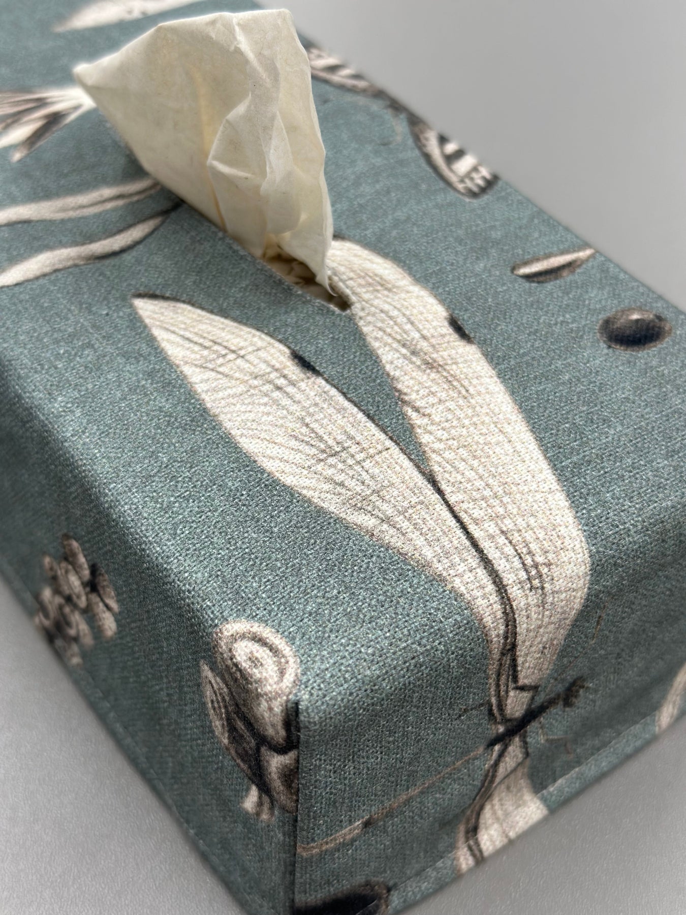 Bring naturens skønhed ind i dit hjem med dette charmerende servietboks-betræk. Med en rolig, lyseblå baggrund og et delikat print af guldsmede og artiskokker er det en smuk og overraskende detalje, der vil imponere dine gæster. Betrækket er fremstillet af 100% bomuld, der sikrer et friskt og stilfuldt look, hver gang du bruger en serviet.