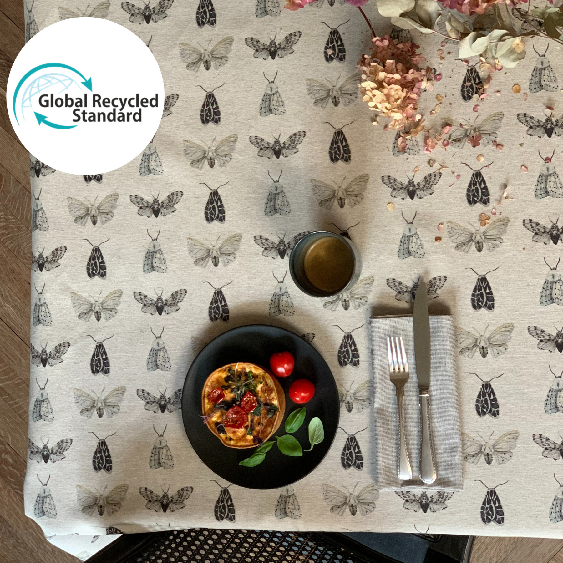 Vores dug er et ansvarligt valg. Den er lavet af et mix af 77% bomuld/polyester og 23% hør, hvor hele 77% af stoffet er genanvendt. Dugens funktionalitet og design vil lyse op i din spisestue og bringe en festlig stemning til dine familiemåltider.