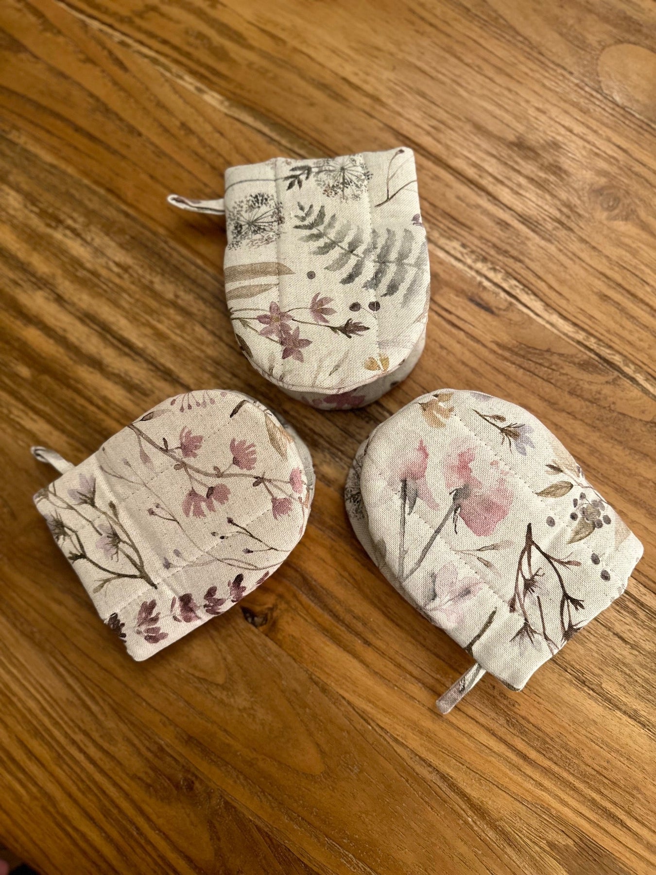 Lille ovnhandske med dobbelt uldfyld, i bomuld og hør, Aitana kollektion