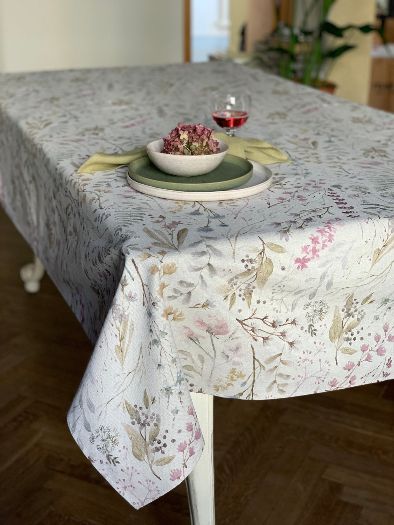 Materiale: En holdbar blanding af 90% bomuld og 10% hør med et smukt, printet mønster.