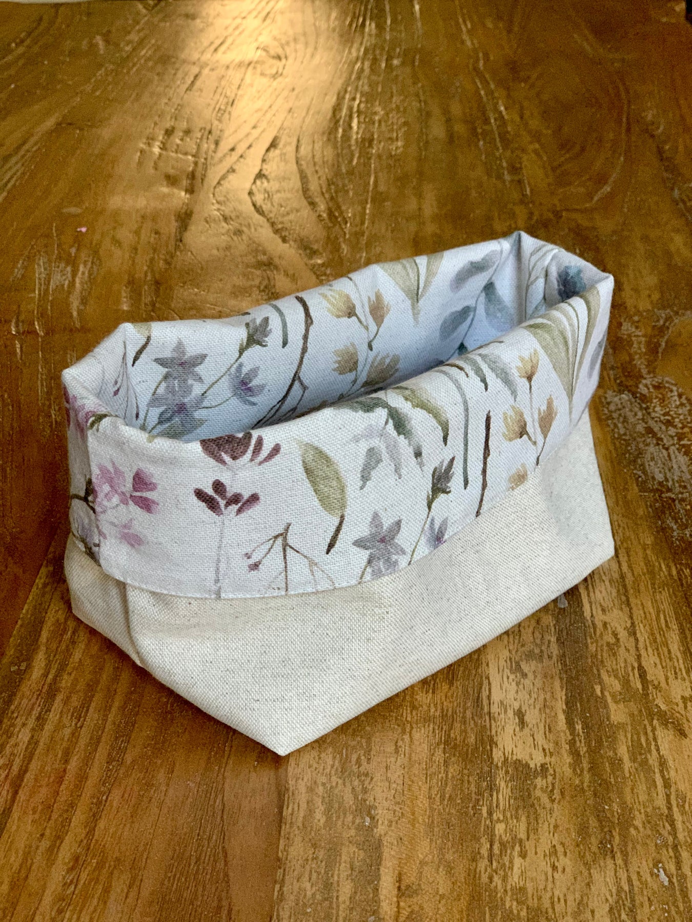 Bring solskin ind i dit køkken med denne smukke stofkurv fra vores "Aitana Lamnia"-kollektion. Den er fremstillet af en skøn blanding af bomuld og hør og dekoreret med et print af livlige blomster fra en eng. Denne lette og fine kurv er perfekt til brød, frugter eller småting og tilføjer et friskt pust til ethvert hjem.