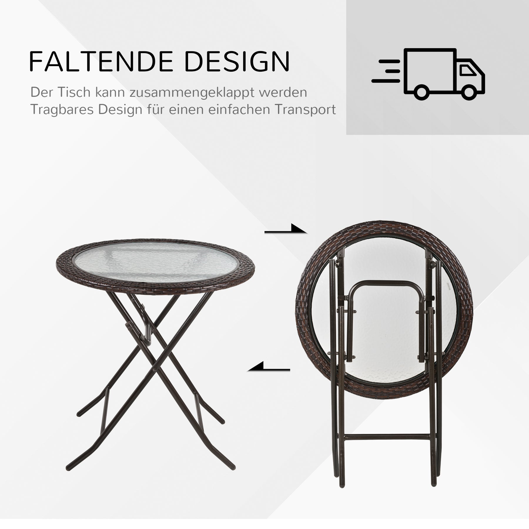 Tilføj et strejf af elegance til dit indendørs eller udendørs rum med dette smukke runde bord (68 x 73 cm). Bordet har en ramme i rustfrit stål med en chokoladebrun syntetisk rattanfletning. Bordpladen i hærdet glas er ikke kun elegant, men også særligt nem at vedligeholde. Takket være foldefunktionen kan bordet foldes og opbevares for at spare plads.