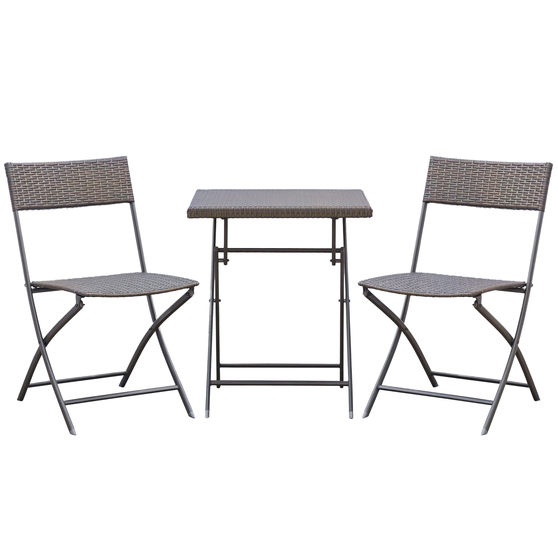 Oplev den perfekte kombination af stil og funktionalitet med dette elegante bistrosæt, der inviterer til livlige samtaler og hyggelige stunder på balkonen eller i haven. Sættet, der består af to klapstole og et bord med en robust rattanplade, er fremstillet af slidstærkt metal og håndflettet polyrattan, hvilket sikrer vejrbestandighed og holdbarhed til mange sæsoner.