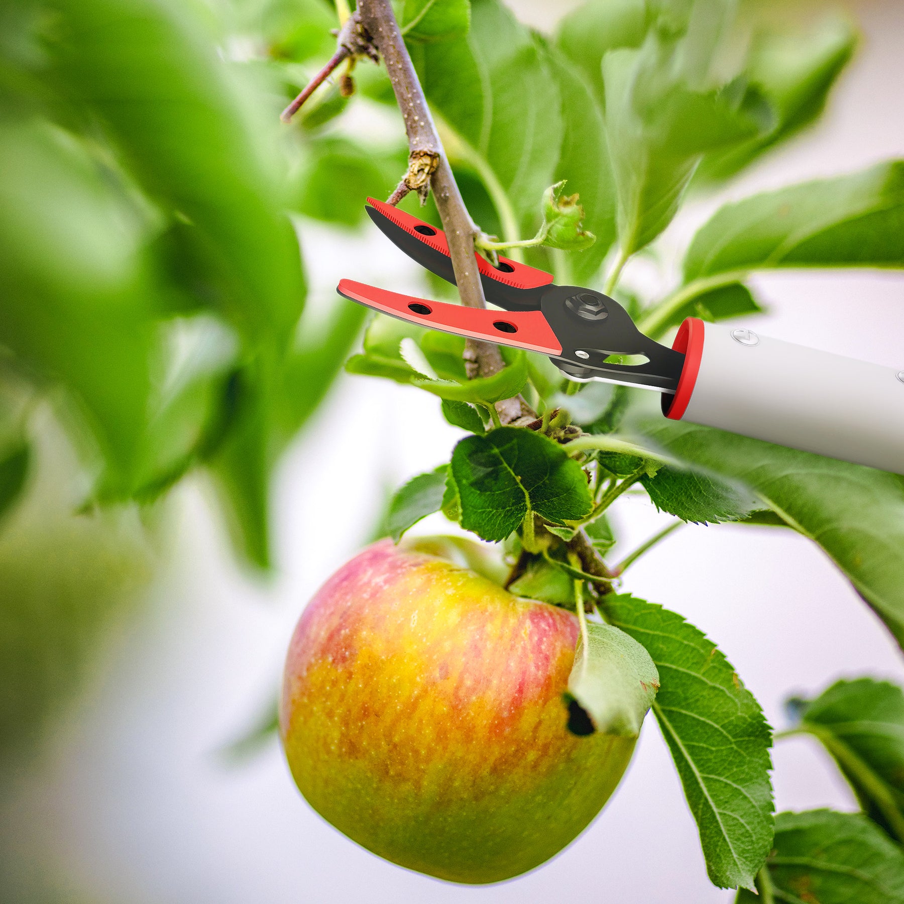 Med denne 120 cm lange træsaks kan du nemt klare høje grene. Denne træsaks med lang rækkevidde er designet til beskæring af grene eller lette frugtstængler uden stige, så du kan klippe grene sikkert fra jorden.