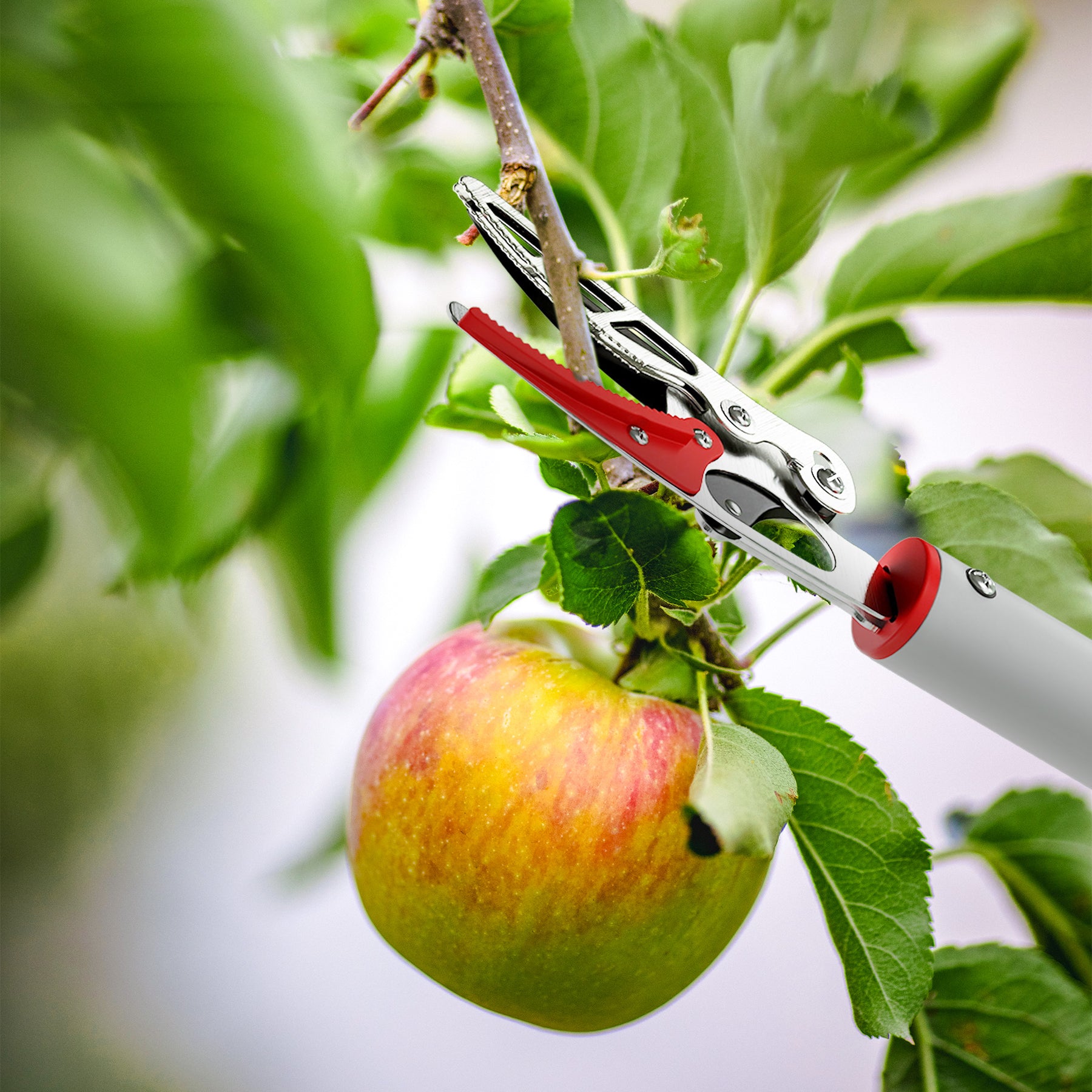 Med denne 180 cm lange træsaks kan du nemt klare høje grene. Den er designet til beskæring af grene eller lette frugtplukker uden stige, så du kan klippe grene sikkert fra jorden.