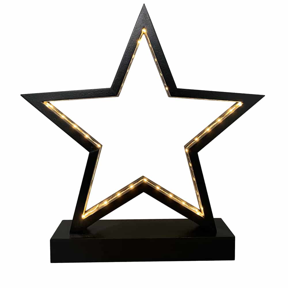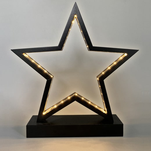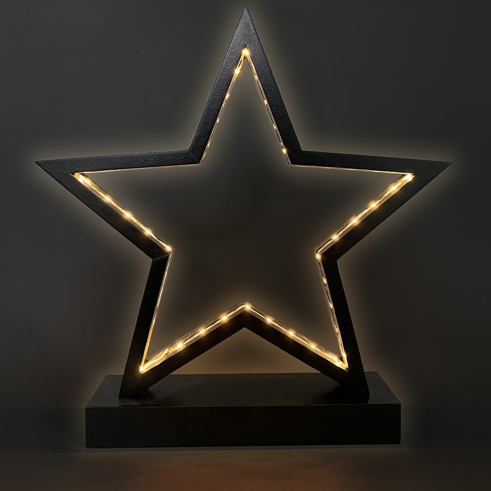 Denne moderne designet trælampe i form af en stjerne kan bruges individuelt. LED-remmen lyser i et varmt hvidt lys og sikrer en festlig stemning især i den mørke årstid. De 45 LED'er har et lavt strømforbrug ved optimal lysstyrke.