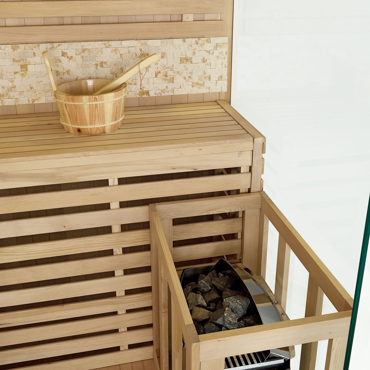 Finsk saunakabine Espoo200 Premium med naturstensvæg: ægte sauna-luksus til hjemmet