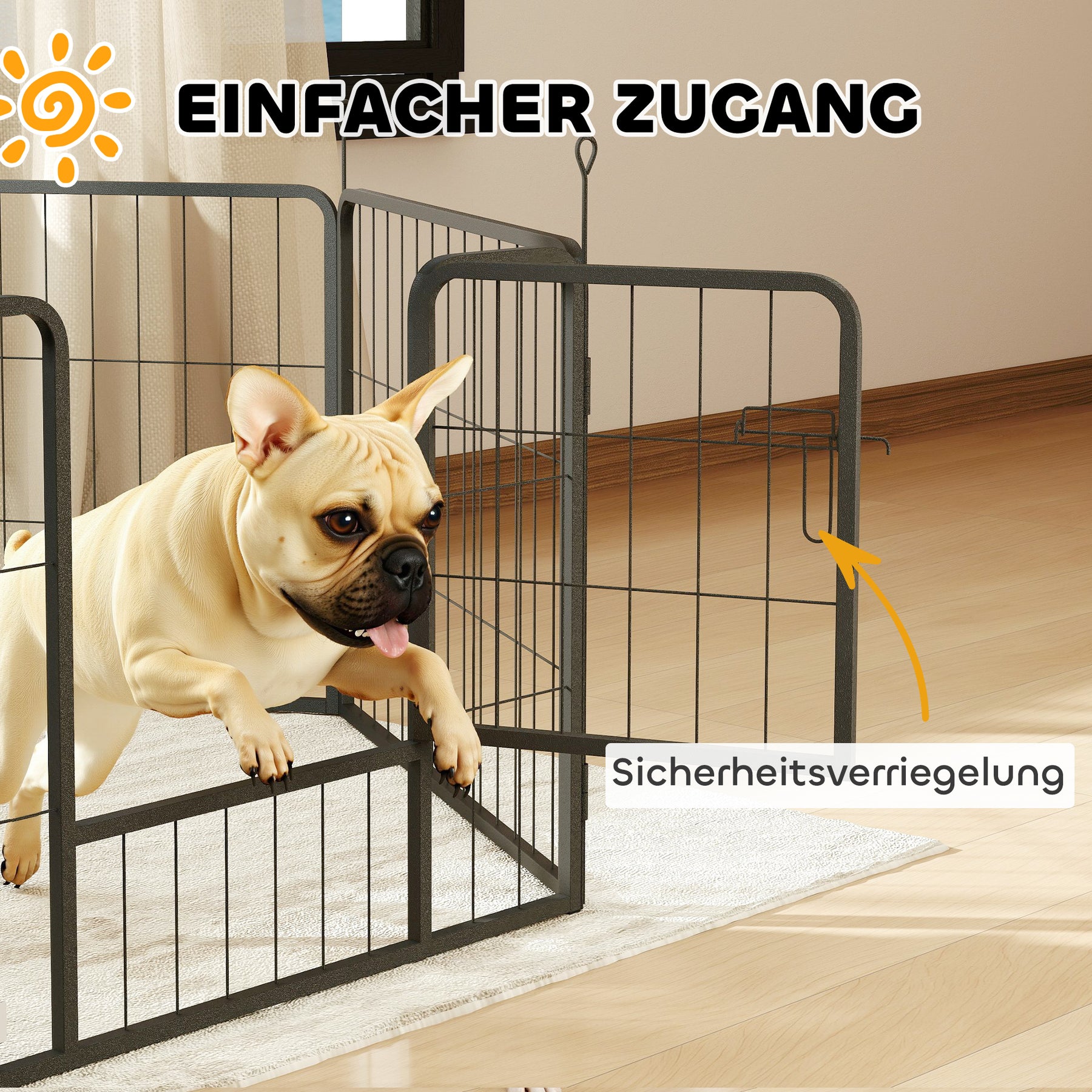 Opdag det alsidige hundebur, ideelt til din firbenede ven! Med seks brugerdefinerbare paneler kan legeområdet forvandles til former som et rektangel eller L, så det passer til din plads og dit kæledyrs behov. Den er sikker og rummelig med en praktisk dør, så den er velegnet til både indendørs og udendørs brug.