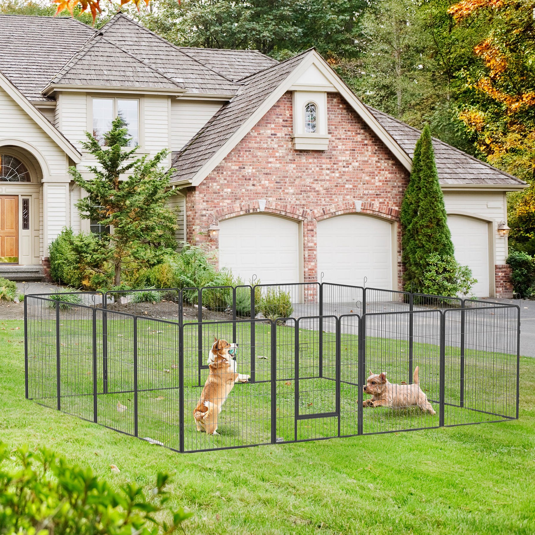 Denne hvalpegård er ideel til både indendørs og udendørs brug. Med sin robuste konstruktion og justerbare design giver den en sikker lege- og hvileplads for dine hvalpe, hvilket fremmer deres fysiske og mentale sundhed. Skab trygge rammer for dine små venner, så de kan lære verden at kende.