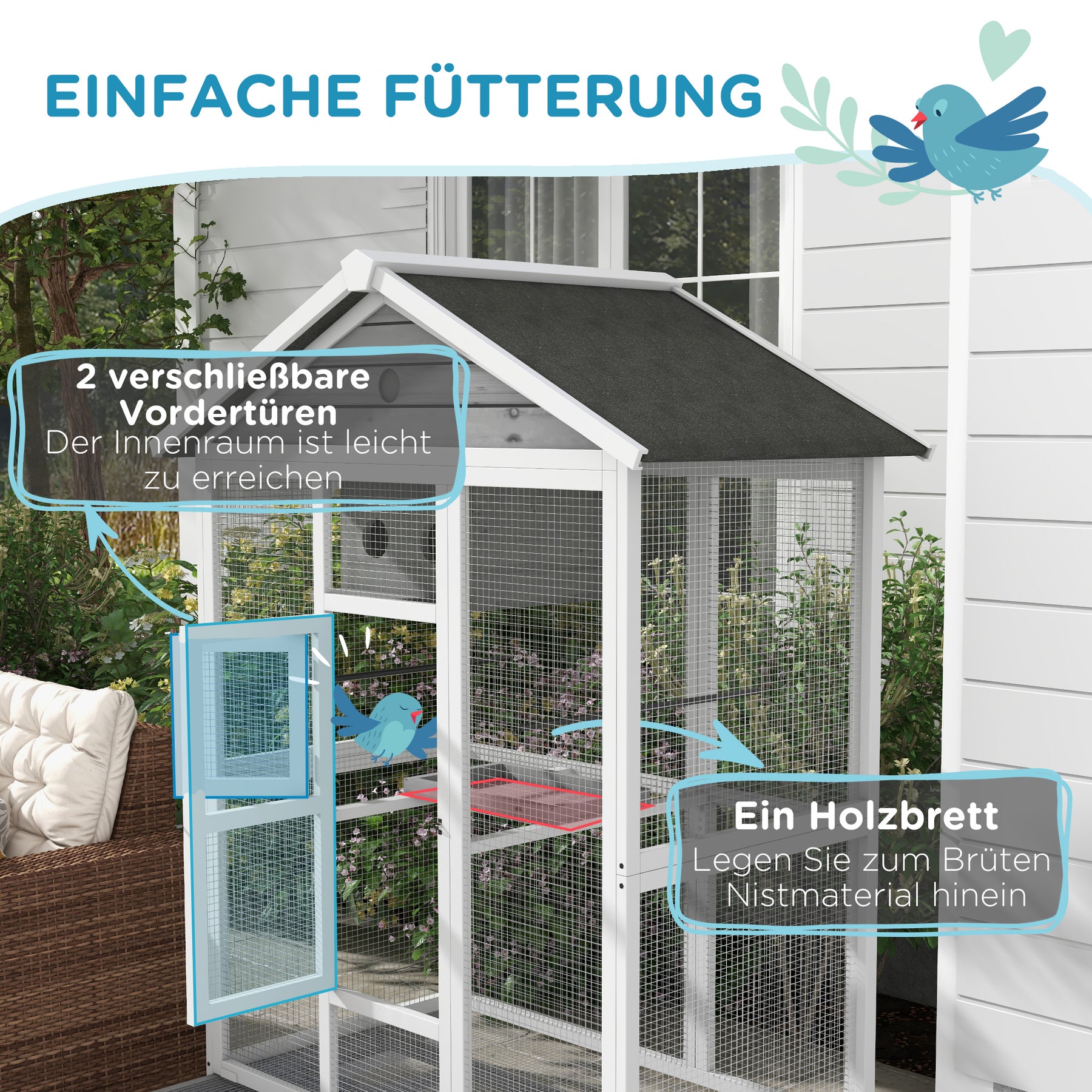 Forkæl dine fjerklædte venner med et smukt nyt hjem. Dette alsidige fuglebur er ideelt til kanariefugle og er egnet til både indendørs og udendørs brug. Flere siddepladser, en foderbakke og et redeområde vil få dine små fugle til at føle sig hjemme.