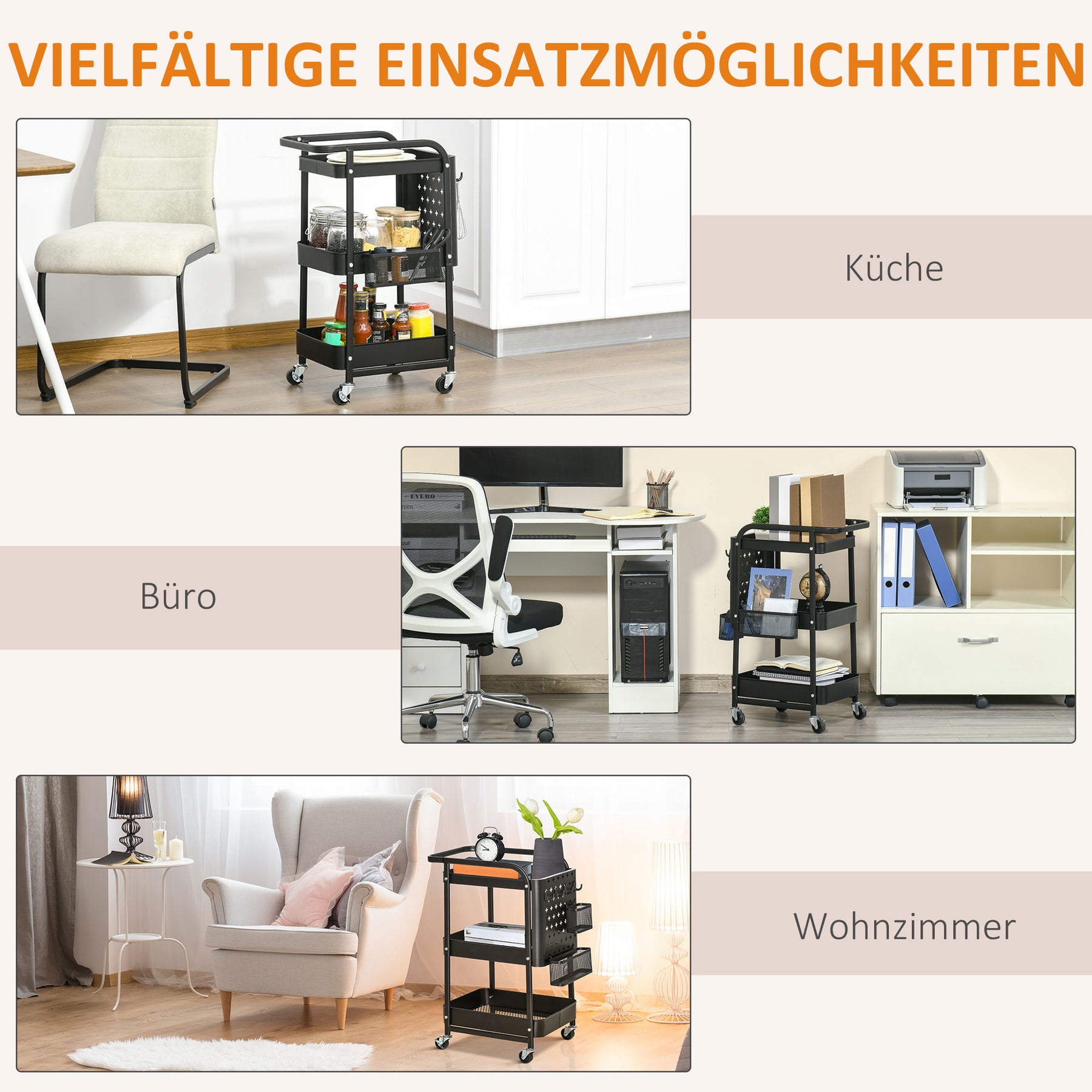 Køkkenvogn med hulplade, håndklædeholder, opbevaringskurve, sort
