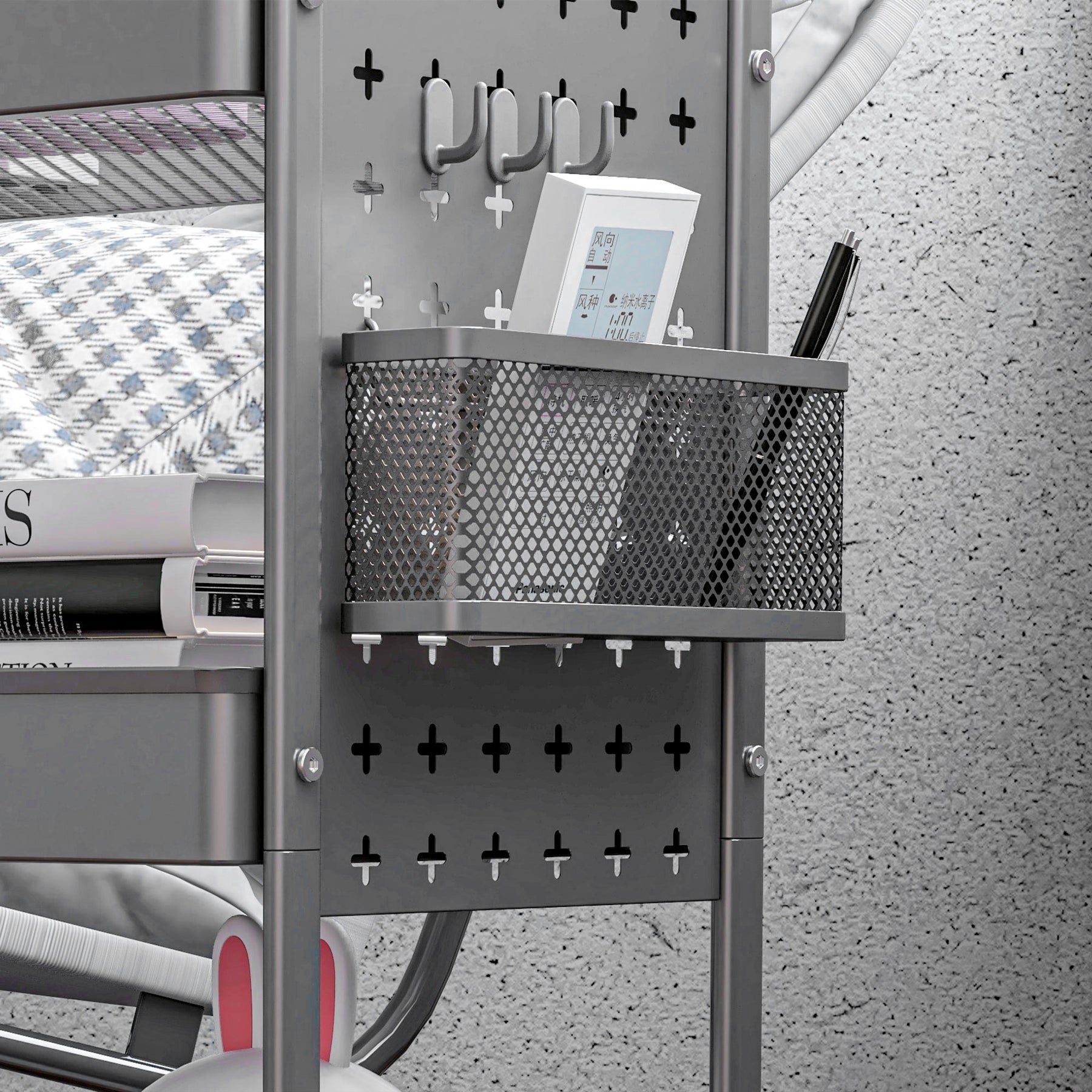 Opdag den perfekte løsning til små rum med denne kompakte rullevogn, der giver dig ekstra opbevaringsplads. Med netkurvene og sidekrogene kan du nemt organisere dagligvarer og tilbehør. De letløbende hjul og det praktiske håndtag gør det nemt at flytte vognen, så den altid er lige der, hvor du har brug for den.
