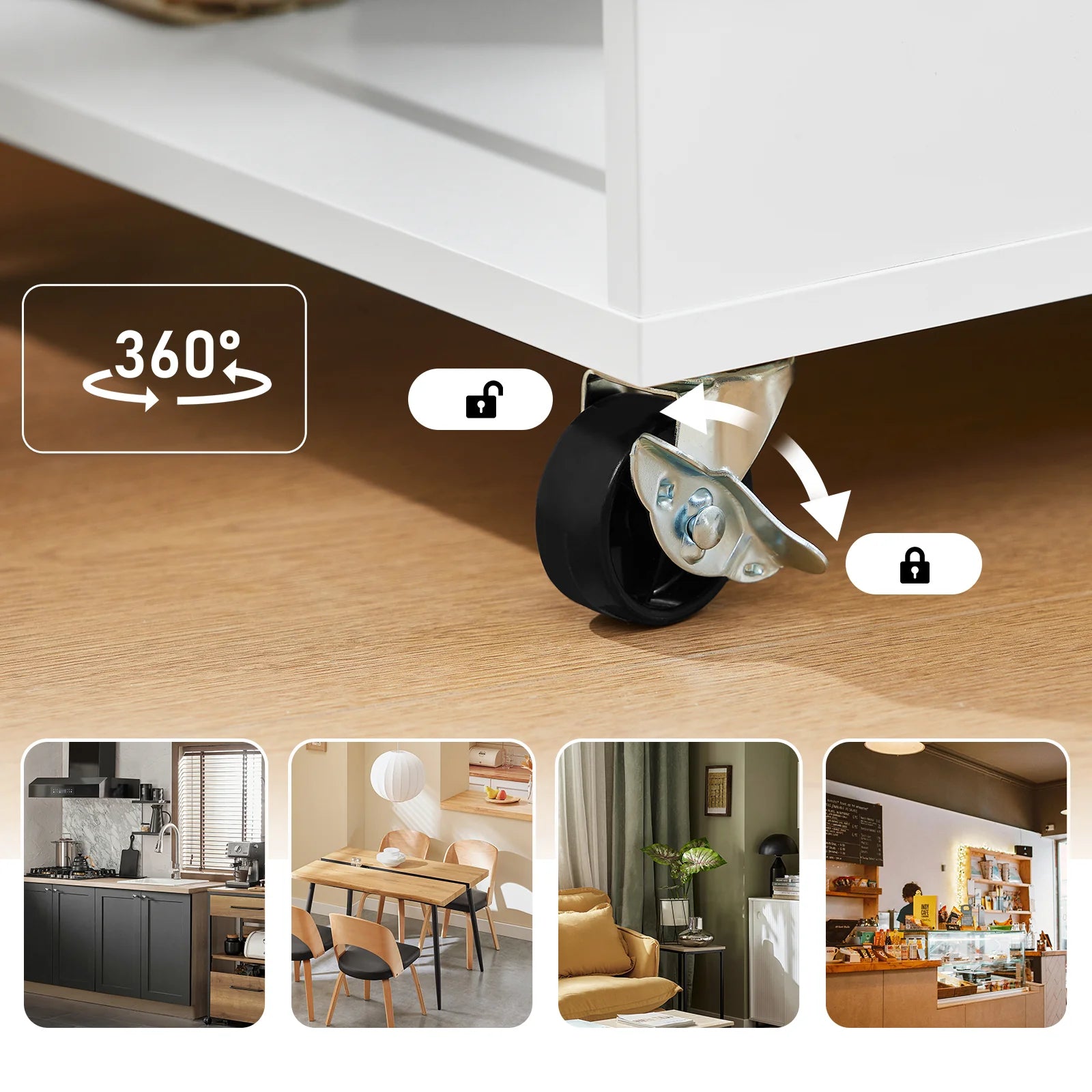 Få en robust og rummelig køkkenvogn, der kombinerer funktionalitet med mobilitet og smart opbevaring til dit køkken eller spisestue. Med en bæreevne på op til 68 kg og mål på 70 x 40 x 90 cm, tilbyder den masser af plads til dine køkkenredskaber og tilbehør.