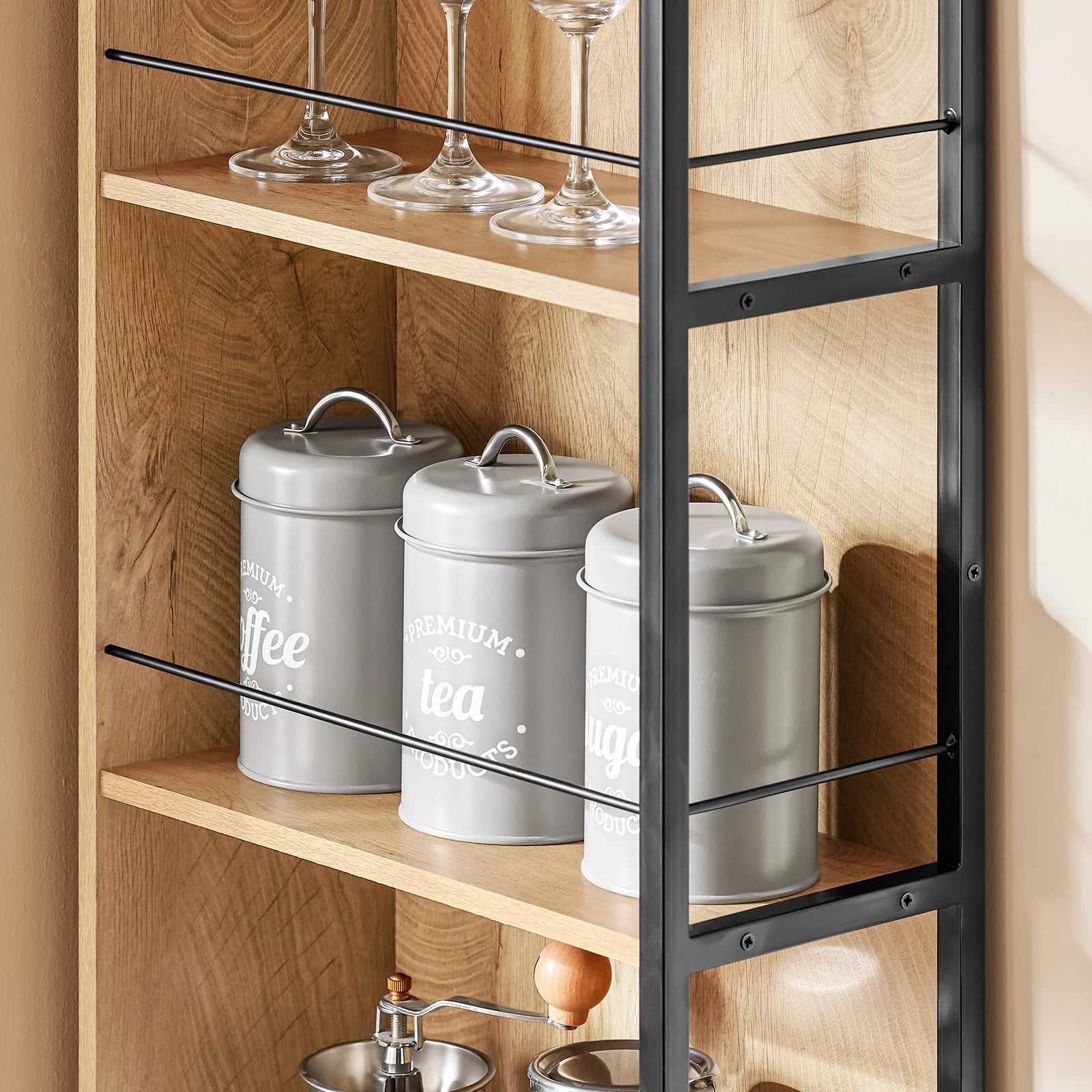 Møblet er designet med fire åbne hylder, elegant indrammet af en robust metalramme. Disse hylder er ideelle til at fremvise dine yndlingsbøger, dekorative genstande eller køkkenartikler, samtidig med at de er let tilgængelige.