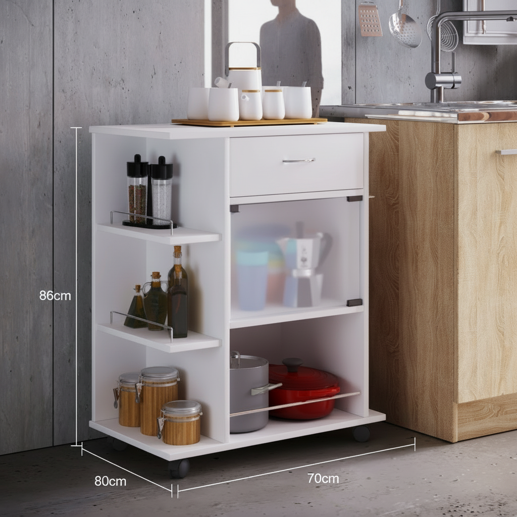 Praktisk og rummelig køkkenvogn til tilstrækkelig ekstra opbevaringsplads i dit køkken.