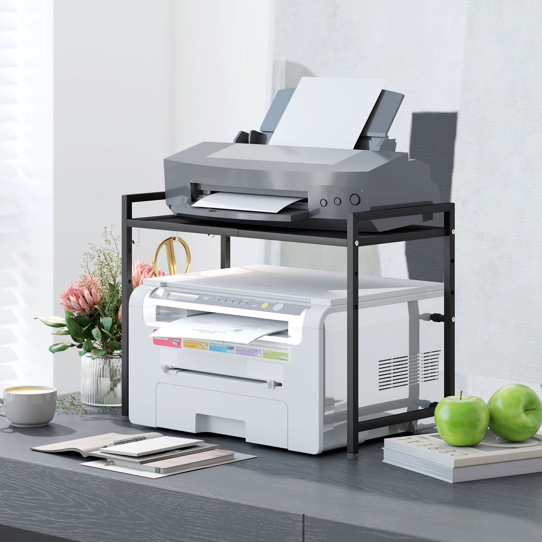 Moderniser dit køkken med denne stilfulde mikrobølgeovnshylde, der skaber orden og overskuelighed. Med en frihøjde på 40 cm nedenunder kan den rumme de fleste apparater, mens tre kroge holder dine redskaber lige ved hånden. Hylden kan forlænges fra 39,5 til 64 cm og forvandles til en elegant kaffestation, der passer perfekt ind i enhver atmosfære.