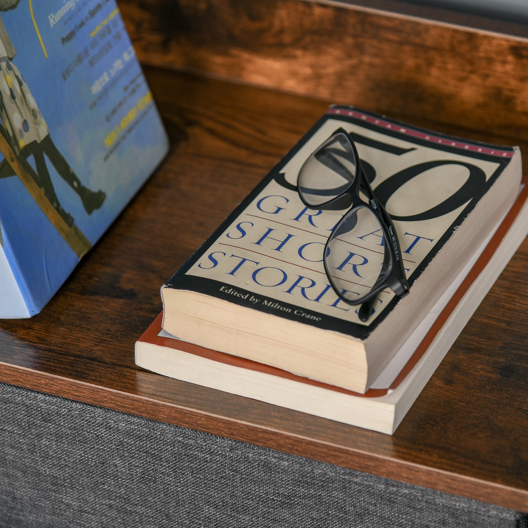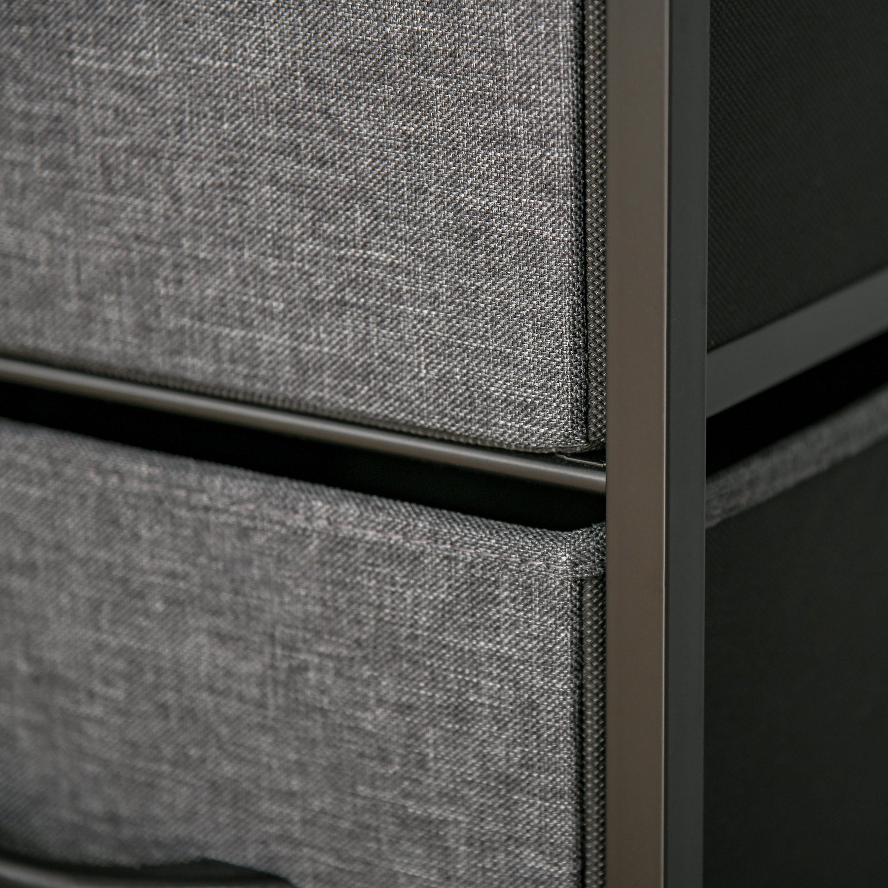 Vælg bløde opbevaringsløsninger derhjemme med denne kommode. Den tilbyder to små og to store skuffer samt to øverste hylder, hvilket giver rigelig opbevarings- og udstillingsplads. Den robuste metalramme sikrer en stabil struktur, mens de justerbare fødder holder den jævnt placeret.
