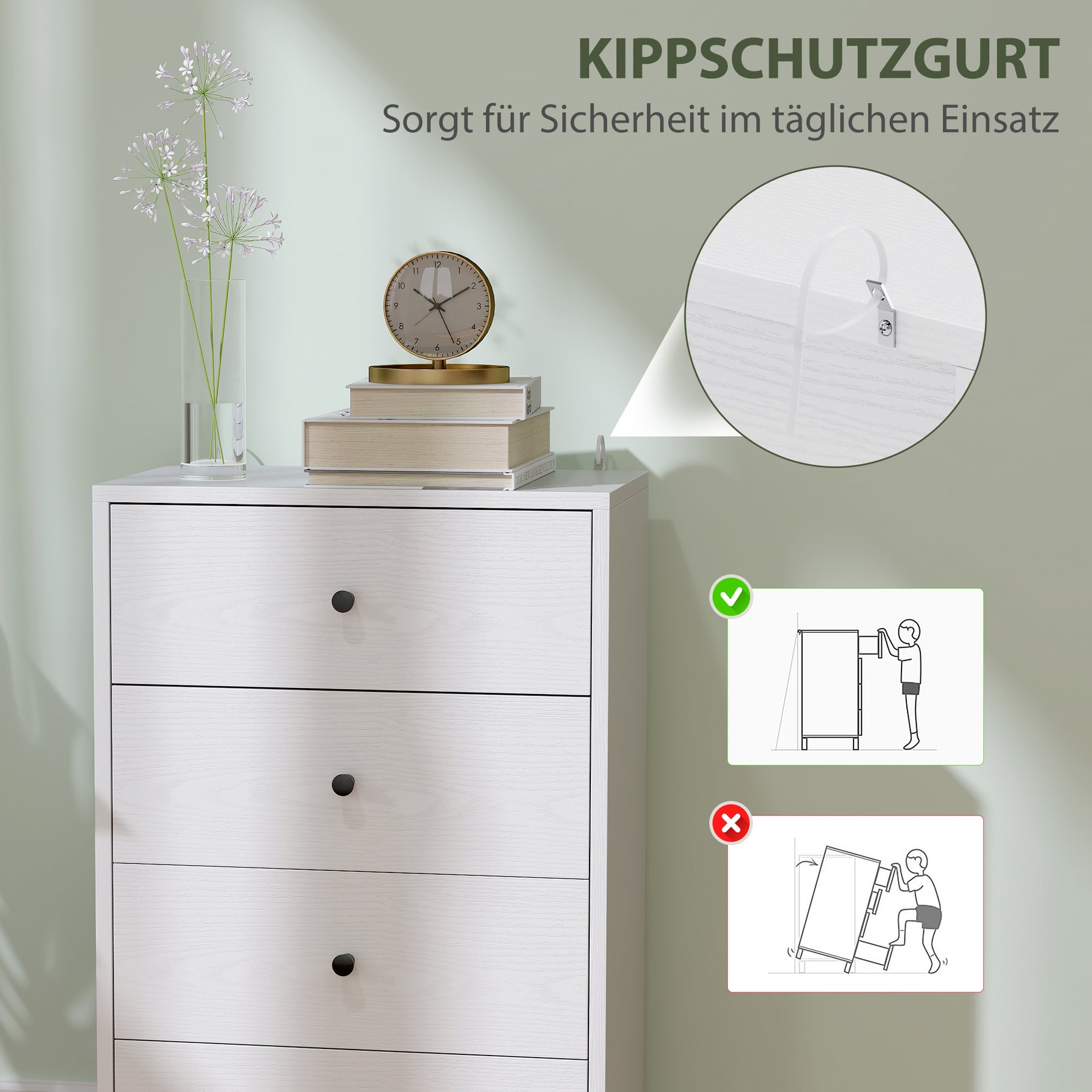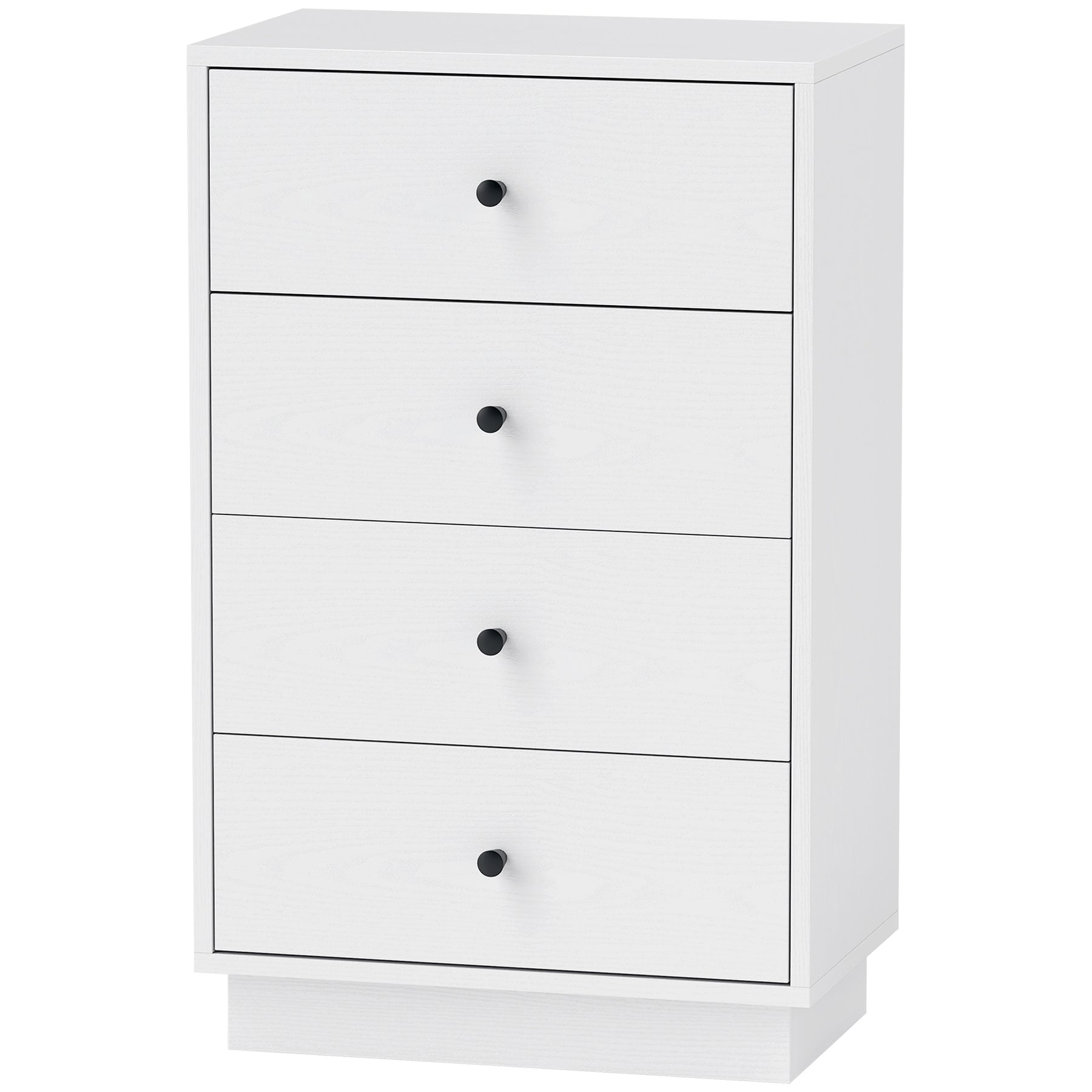 Hold dit hjem organiseret med stil med denne kommode med 4 skuffer. Den elegante kommode har fire store rum til alt fra leggings til hverdagens nødvendigheder og er det perfekte opbevaringsskab til ethvert rum. Dens robuste konstruktion sikrer stabilitet, og det hvide design med stilfulde håndtag tilføjer moderne elegance til dit rum.