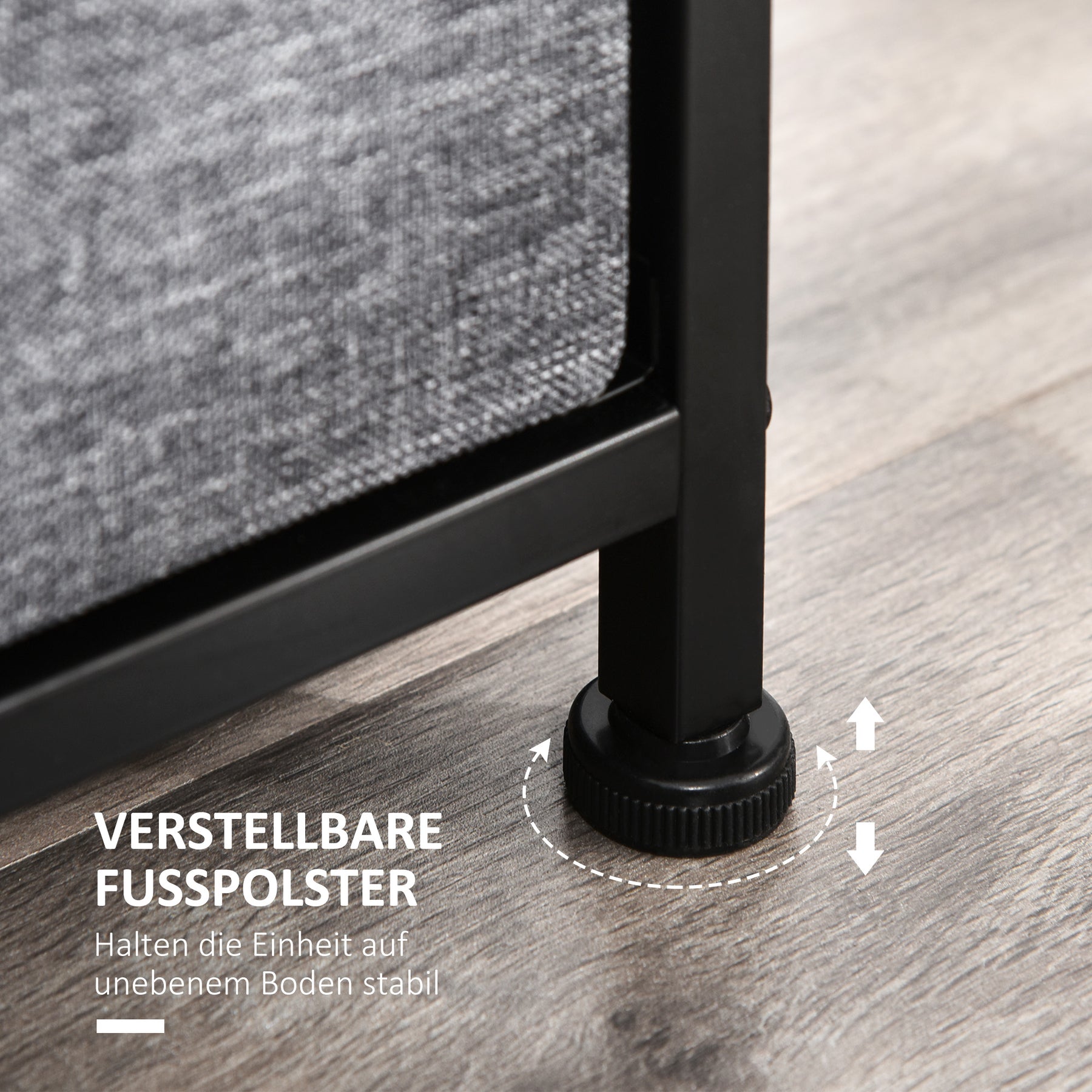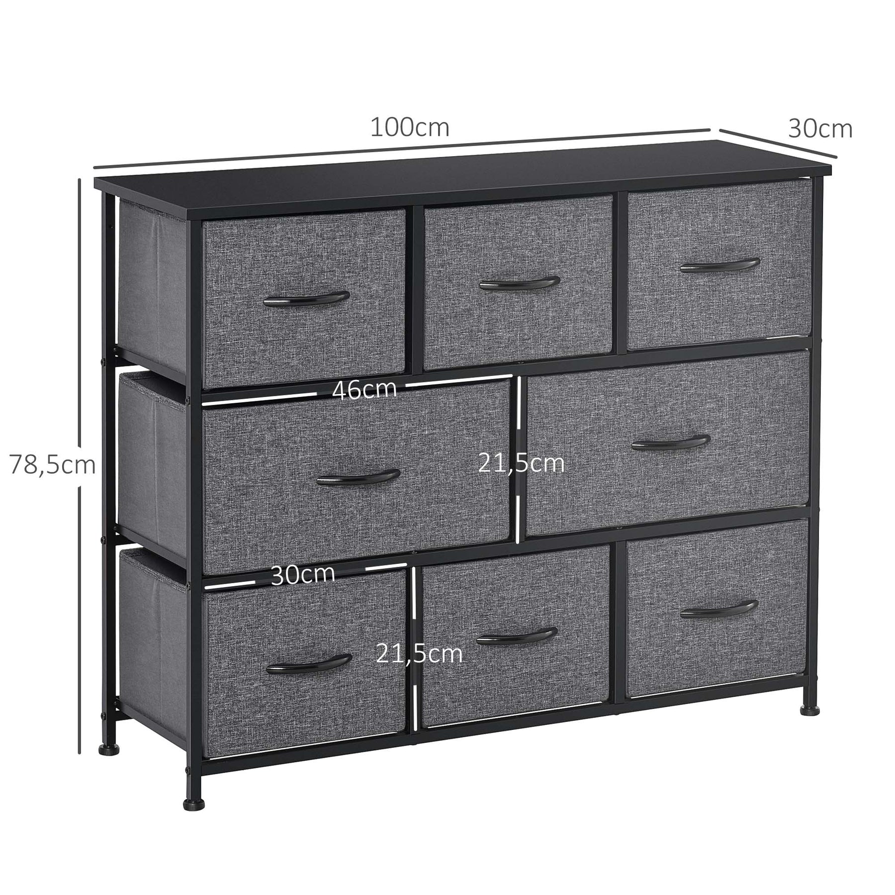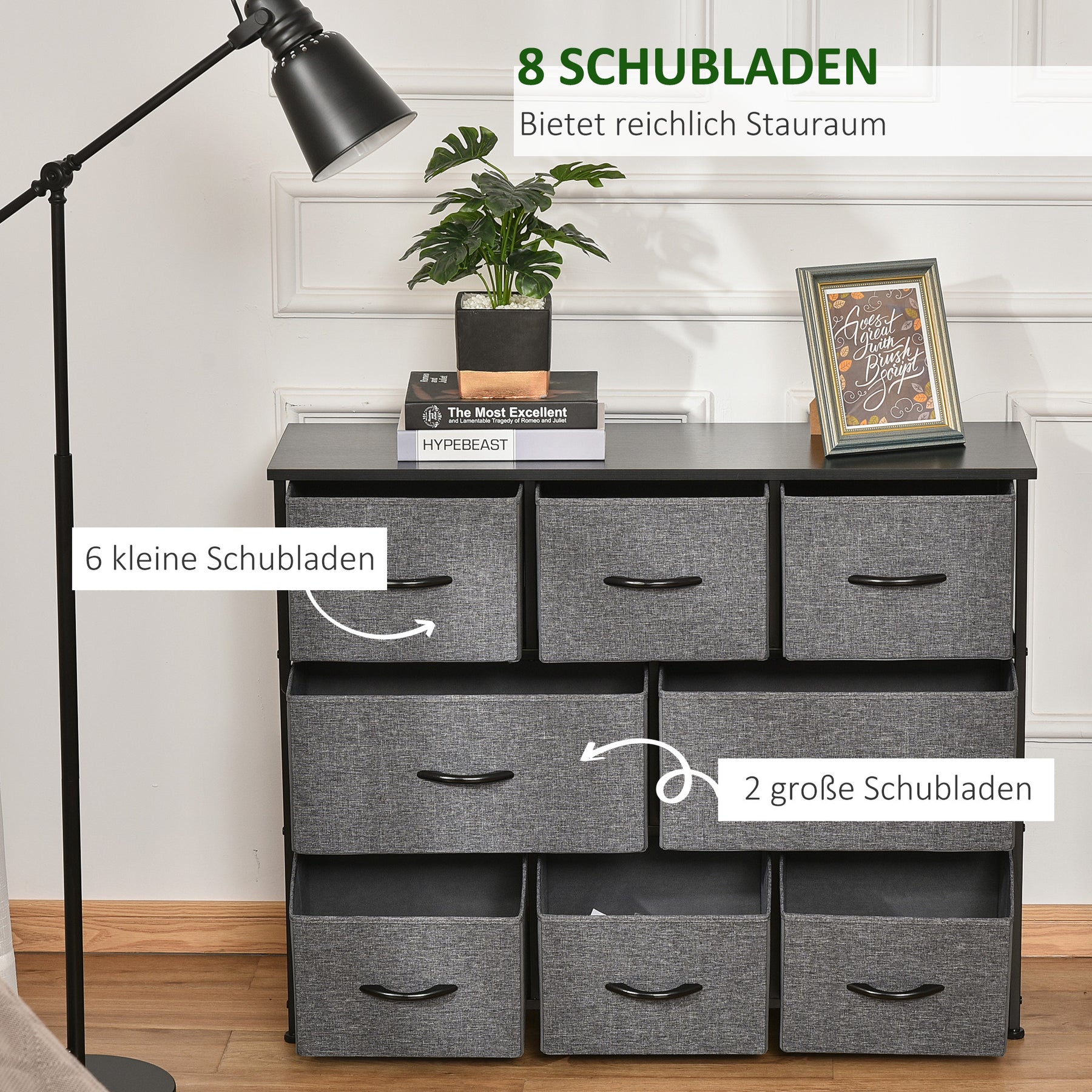 Denne alsidige kommode i neutrale farver er en ideel tilføjelse til ethvert hjem. Med seks små og to store skuffer tilbyder den rigelig plads til tøj og tilbehør, hvilket gør organisering nem. Den robuste metalramme og det anti-tippe-design garanterer sikker og pålidelig brug i ethvert rum.